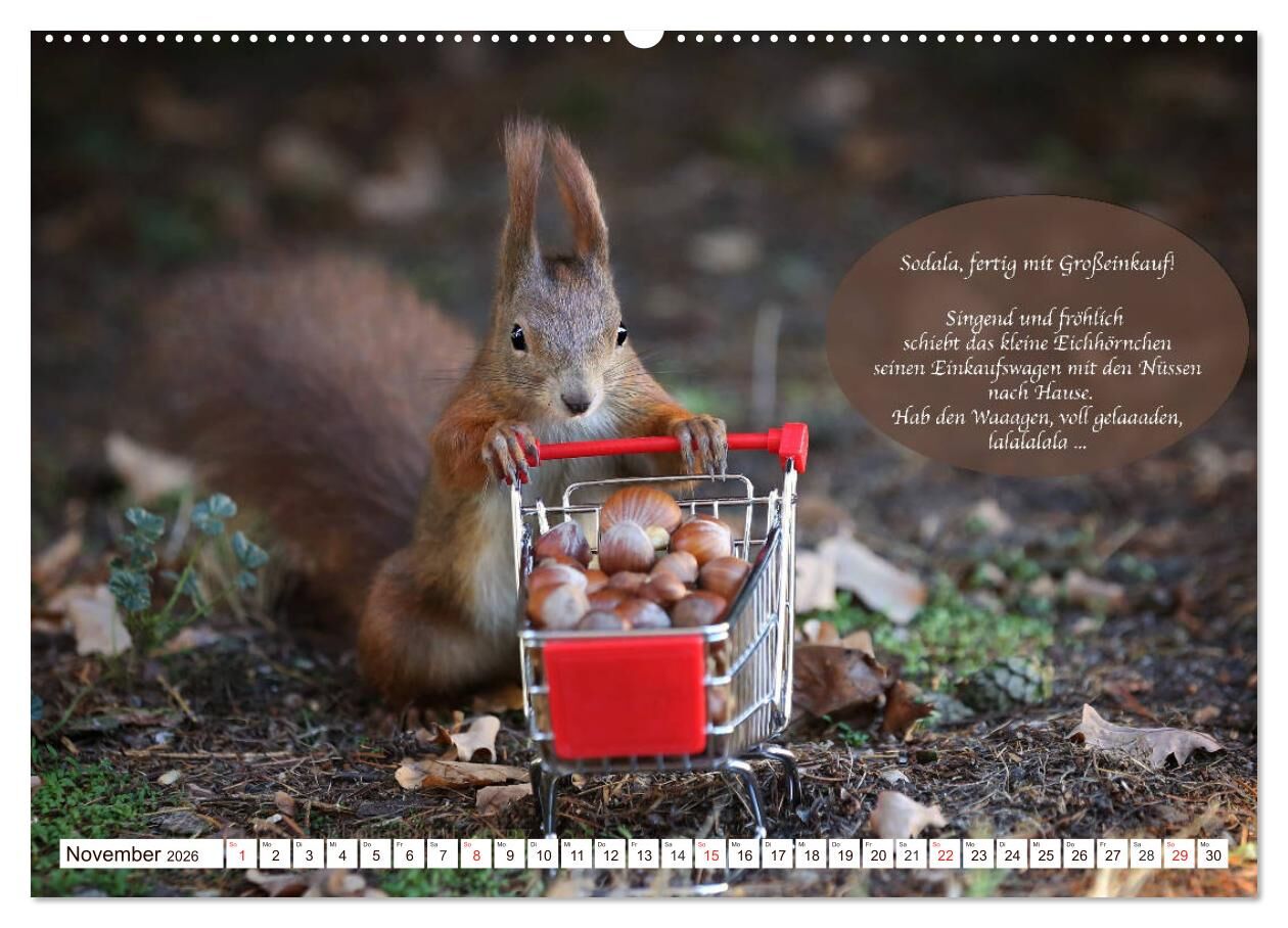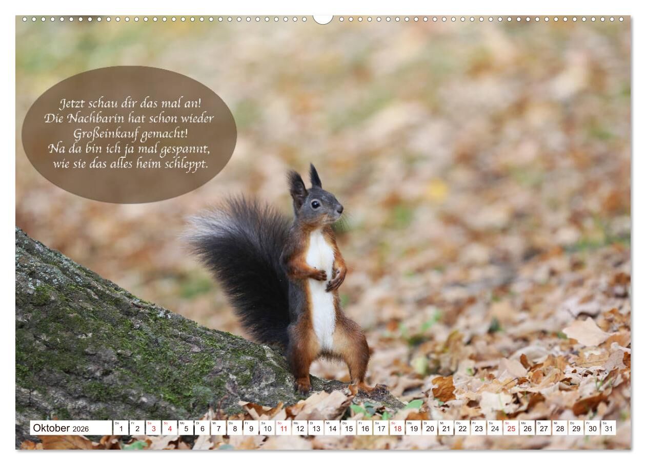 Eichhörnchen - Lustige Kurzgeschichten mit den quirligen Wildtieren (Wandkalender 2026 DIN A2 quer), CALVENDO Monatskalender