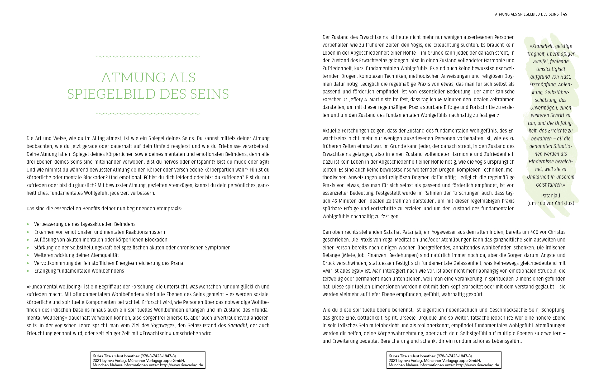 Wir alle atmen automatisch und unbewusst. Doch Atmen ist mehr als nur Luft holen. Eine zu flache Atmung kann Kopfschmerzen, Verspannungen und Müdigkeit verursachen. Bewusste Atmung wiederum kann die Psyche positiv beeinflussen und Schmerzen lindern, indem sie ...