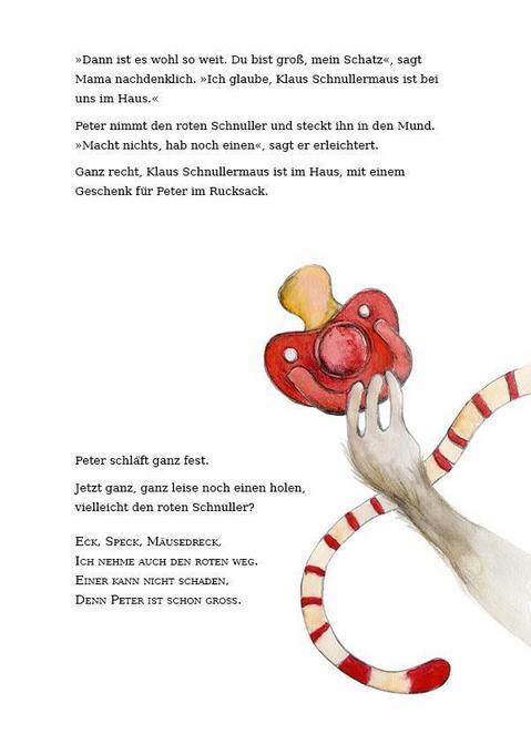 Peter ist schon ein großer Junge. Er spielt Fußball, aber er liebt auch noch seine Schnuller. Eigentlich müssen seine vielen verschiedenen Schnuller tagsüber im Bett bleiben, doch Peter trägt sie noch oft bei sich, nur für den Notfall. Eines Tages verschwindet...