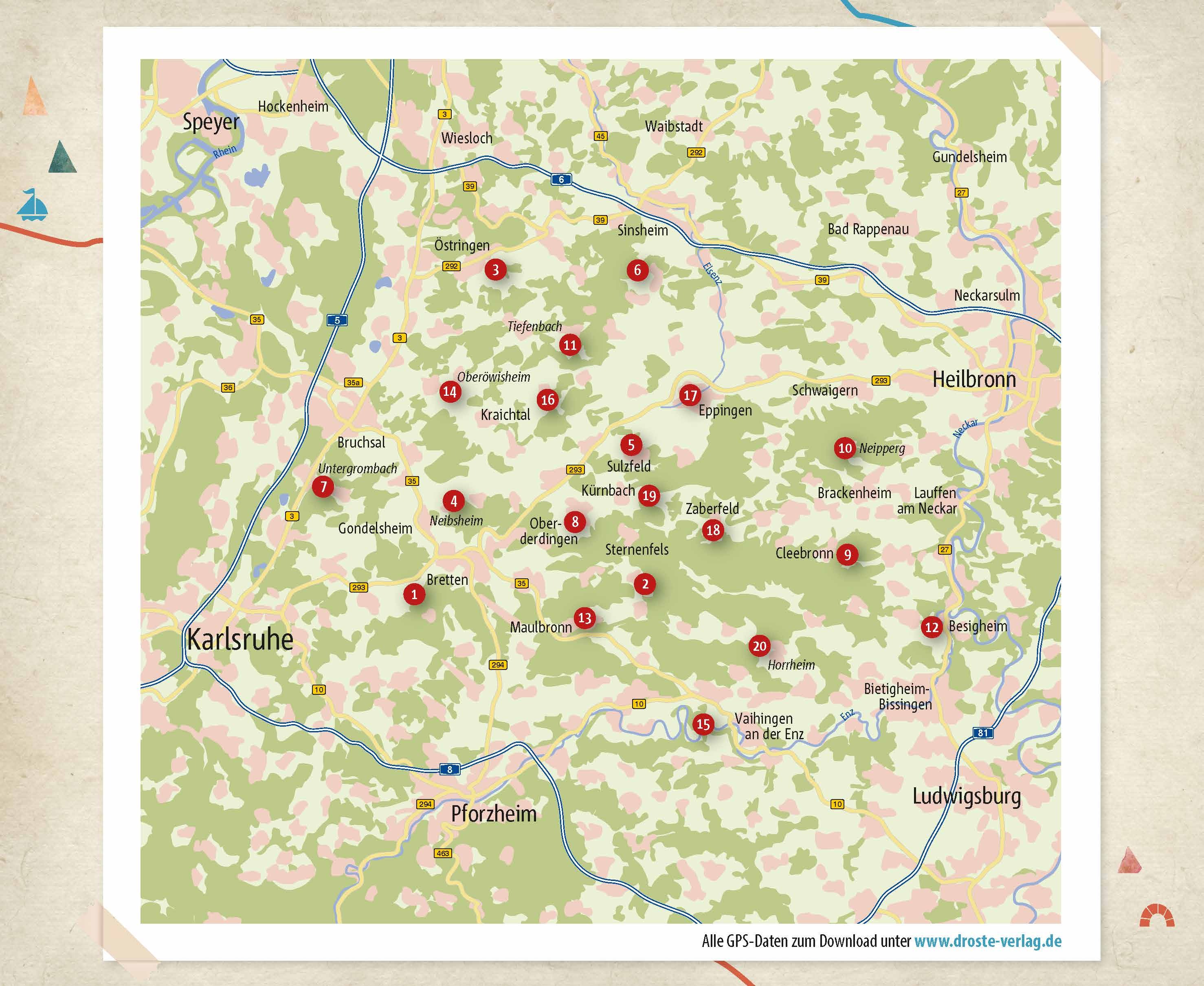 Mandelblüte in Diefenbach, Rapsblüte in Kürnbach, Weinplateau am Derdinger Horn im Kraichgau lässt es sich paradiesisch wandern. 20 Touren führen durch traubenhaft schöne Weinberge, romantische Seeidyllen und zu kulturhistorischen Schätzen. Hügelstürmer-, Hohl...