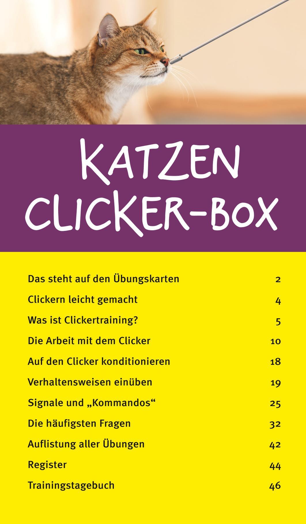 Der einzige Ratgeber im praktischen Boxen-Format mit Trainingskarten - inklusive hochwertigem Clicker. Clickertraining ist eine tolle Möglichkeit, mit Ihrer Katze präzise und ohne Missverständnisse zu kommunizieren und neue Verhaltensweisen zu trainieren. So l...