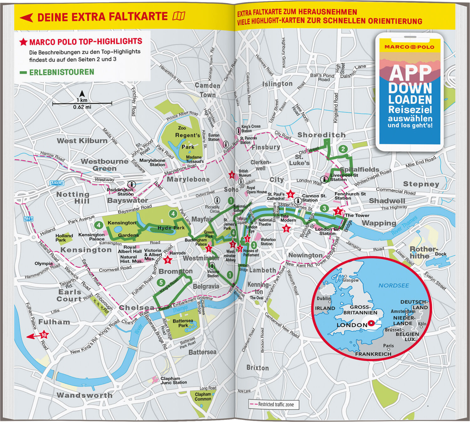 Fish and Chips, Westminster Abbey und die Queen: Mit dem MARCO POLO Reiseführer London entdecken London perfekt im Überblick: Auf den Spuren von Julia Roberts und Hugh Grant durch Notting Hill wandeln, im Hyde Park ein Picknick veranstalten oder in der Nation...
