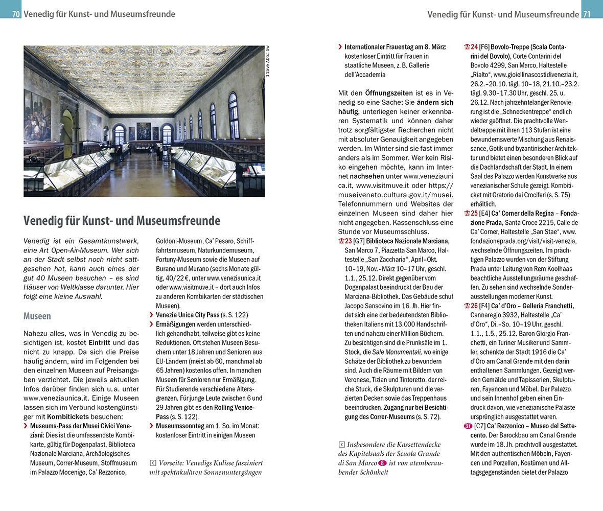 Das auf über 100 Inseln erbaute Venedig und seine Lagune gehören zum UNESCO-Welterbe. Die auch Serenissima, die Heiterste, genannte Stadt begeistert mit ihren historischen Fassaden, verwinkelten Gassen und über 400 Brücken. Unzählige Palazzi, Kirchen und Muse...