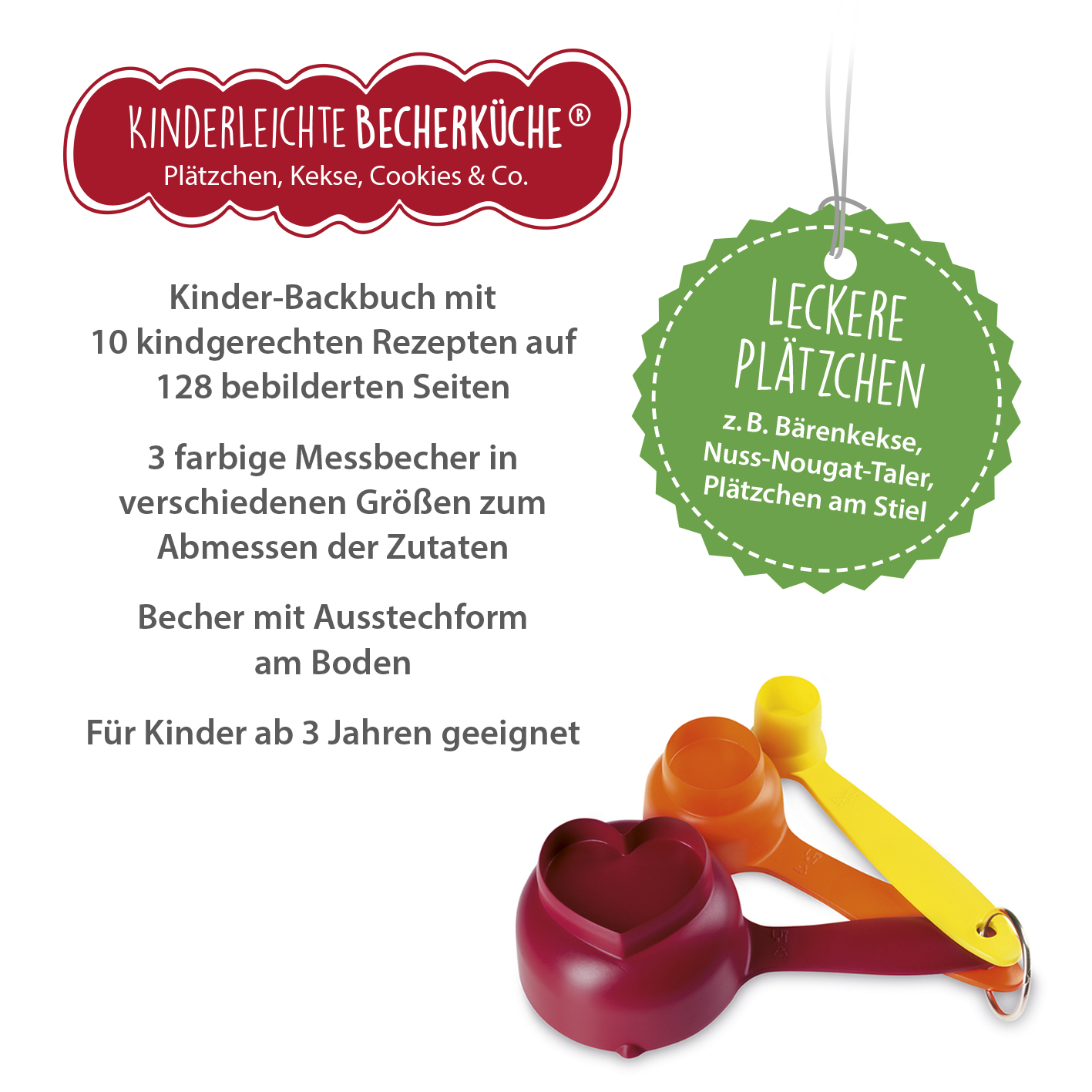 Kinderleichte Becherküche - Plätzchen, Kekse, Cookies & Co. Backset inkl. 3-teiliges Messbecher-Set Wer liebt sie nicht, die kleinen, feinen, süßen Leckereien, die ruck, zuck vernascht sind. Nicht nur in der Advents- und Weihnachtszeit, sondern das ganze J...