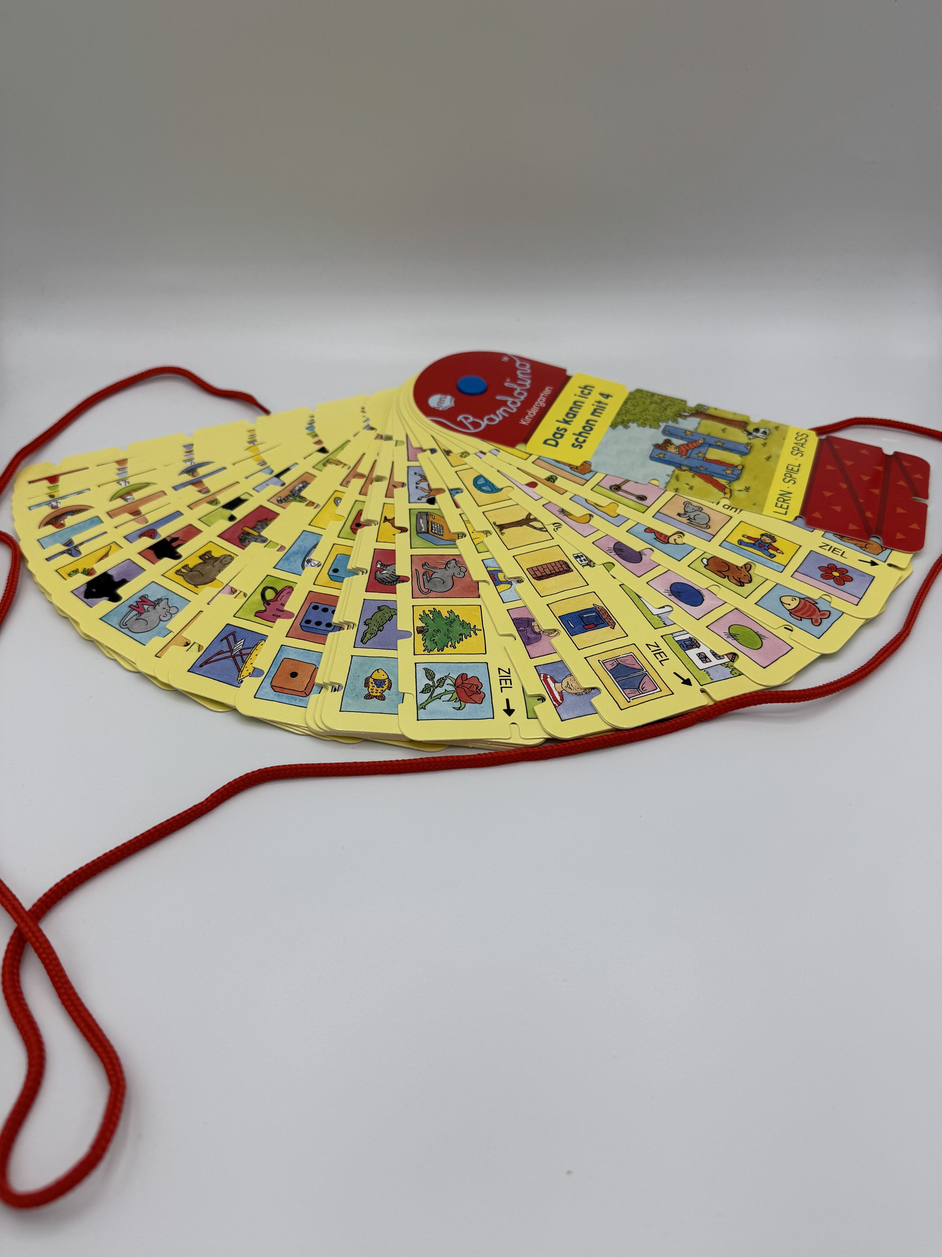 Motiviert lernen mit Lösungskontrolle ! In dem stabilen Lernspielfächer Bandolino erwarten Kindergarten- und Vorschulkinder viele abwechslungsreiche Aufgaben . Einfach die richtigen Bildpaare mit der Schnur verbinden und auf der Kartenrückseite die Lösung kon...