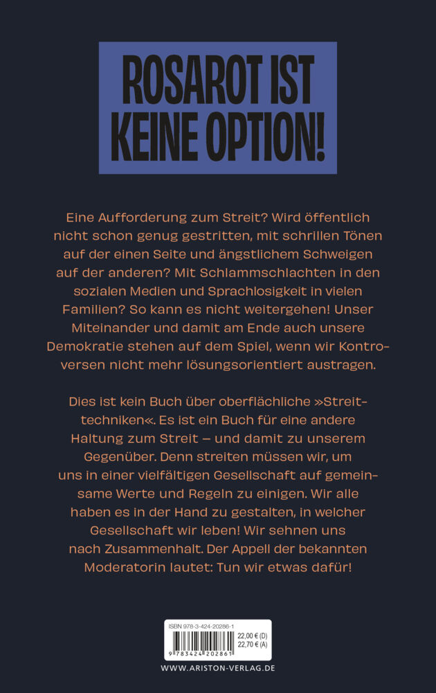 Rosarot ist keine Option! Eine Aufforderung zum Streit? Wird öffentlich nicht schon genug gestritten, mit schrillen Tönen auf der einen Seite und ängstlichem Schweigen auf der anderen? Mit Schlammschlachten in den sozialen Medien und Sprachlosigkeit in vielen ...