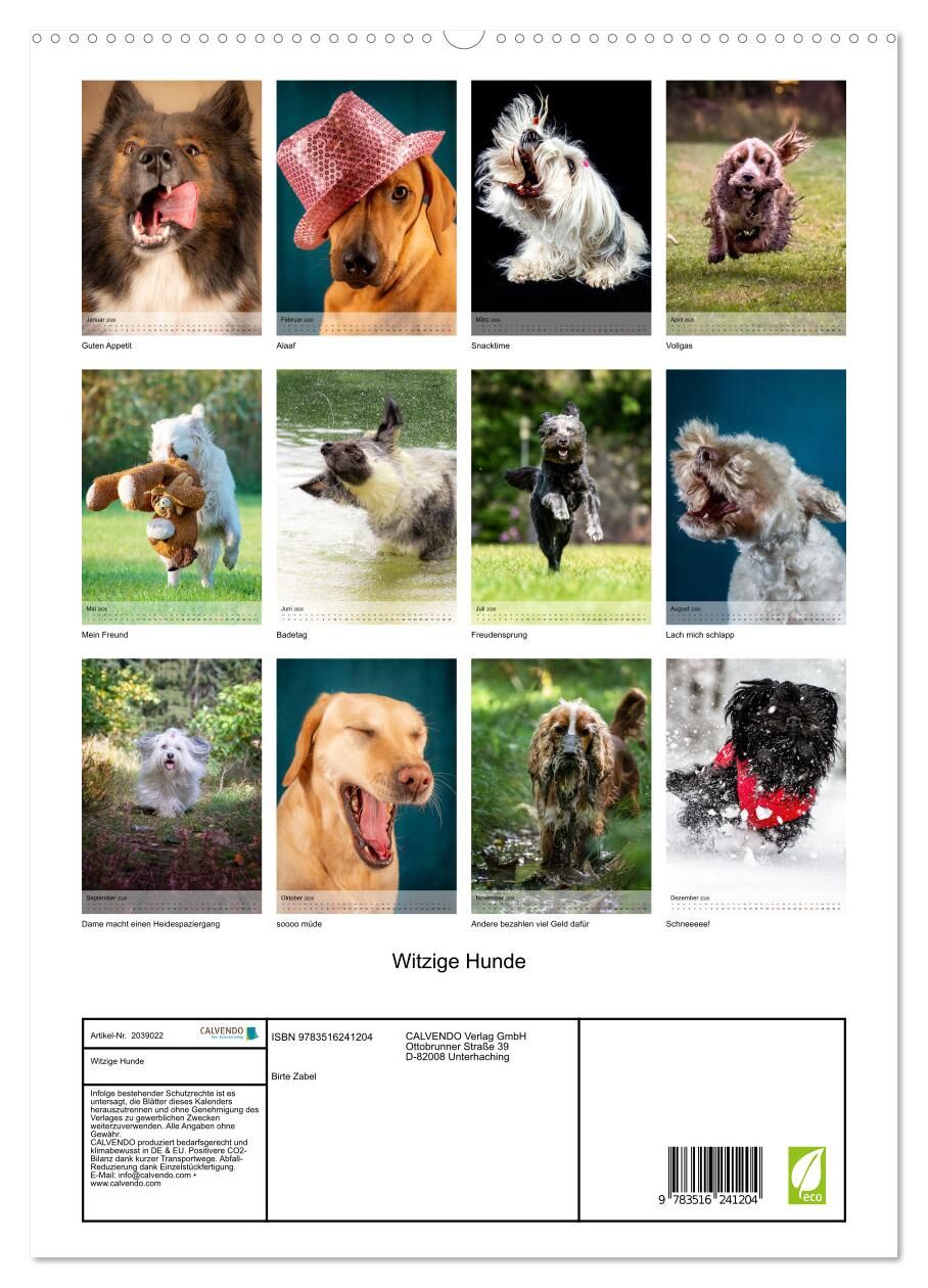 Entdecken Sie unseren einzigartigen Hunde-Kalender, der Ihnen jeden Monat ein Lächeln ins Gesicht zaubert! Mit witzigen Bildern von Hunden in den verrücktesten Situationen bringt dieser Kalender Freude und gute Laune in Ihr Zuhause. Ob beim Spielen im Park, be...