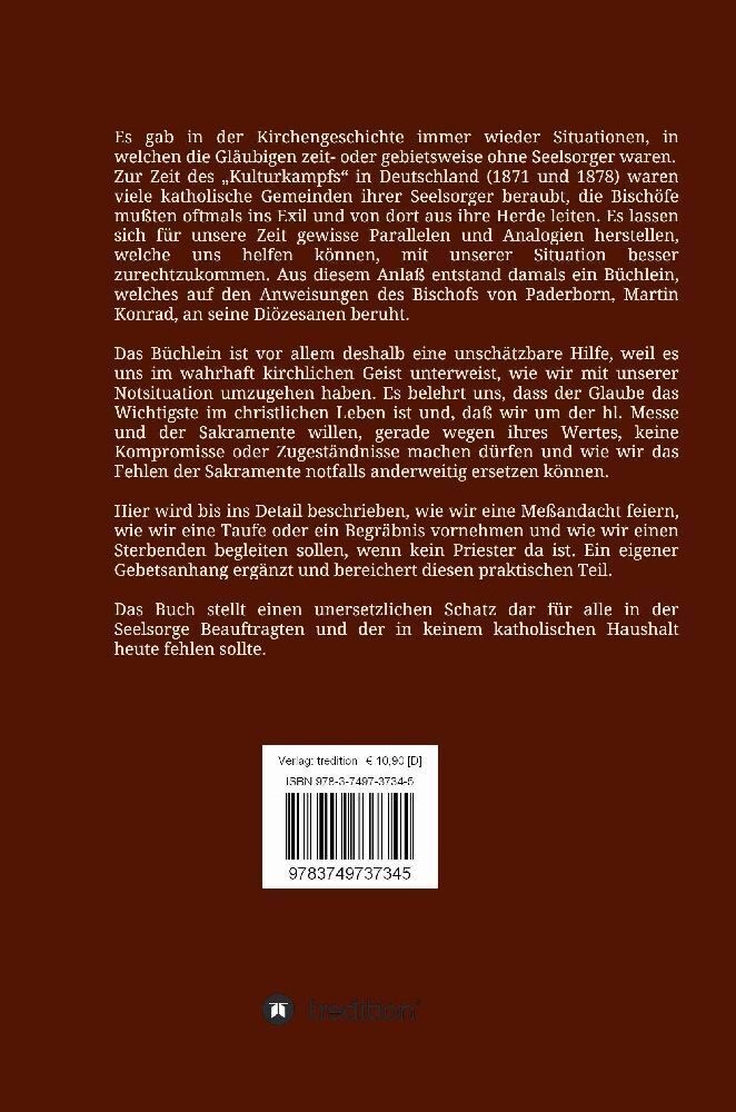 Es gab in der Kirchengeschichte immer wieder Situationen, in welchen die Gläubigen zeit- oder gebietsweise ohne Seelsorger waren. Zur Zeit des Kulturkampfs in Deutschland (1871 und 1878) waren viele katholische Gemeinden ihrer Seelsorger beraubt, die Bischöfe ...