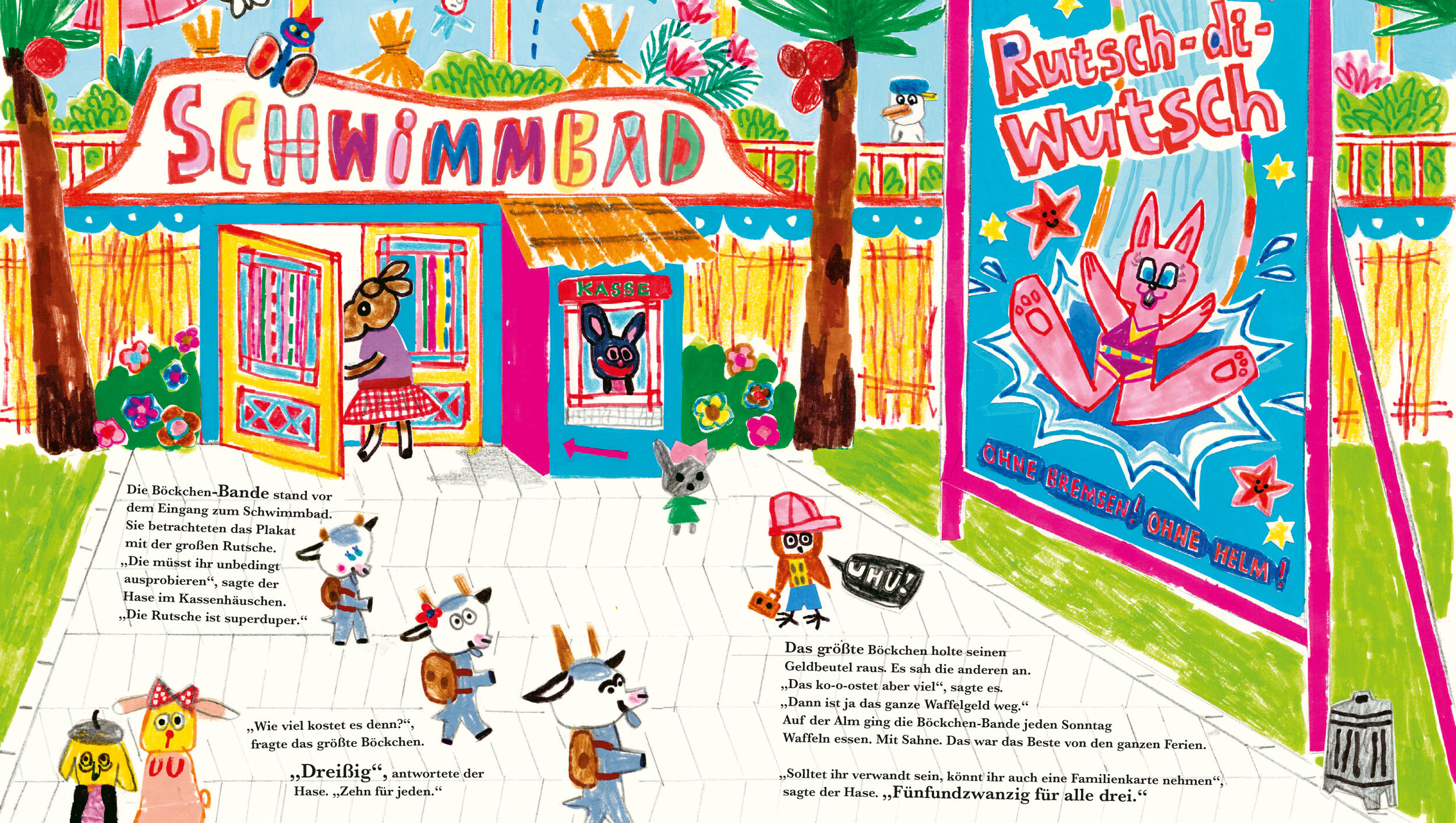 »Genial durchgeknallt« DIE ZEIT, Magdalena Hamm, 09.03.2017 Liebe Kinder, dies ist ein Bilderbuch nach eurem Herzen! Es kommen drei verwegene Geschwister darin vor, die fest zusammenhalten naja, meistens. Sie sind voller Lust auf Schwimmbad, Waffeln mit Sahne...