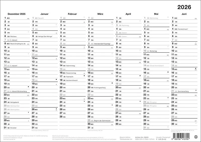 - Schlichter Wandkalender 2026 im Minimalist Design: Eine Spalte pro Monat inklusive Feiertage - So geht Planen: Neutrale Organisationshilfe für alle wichtigen Verabredungen von Dezember des Vorjahres bis zum Januar des Folgejahres - Die Terminübersicht mit St...