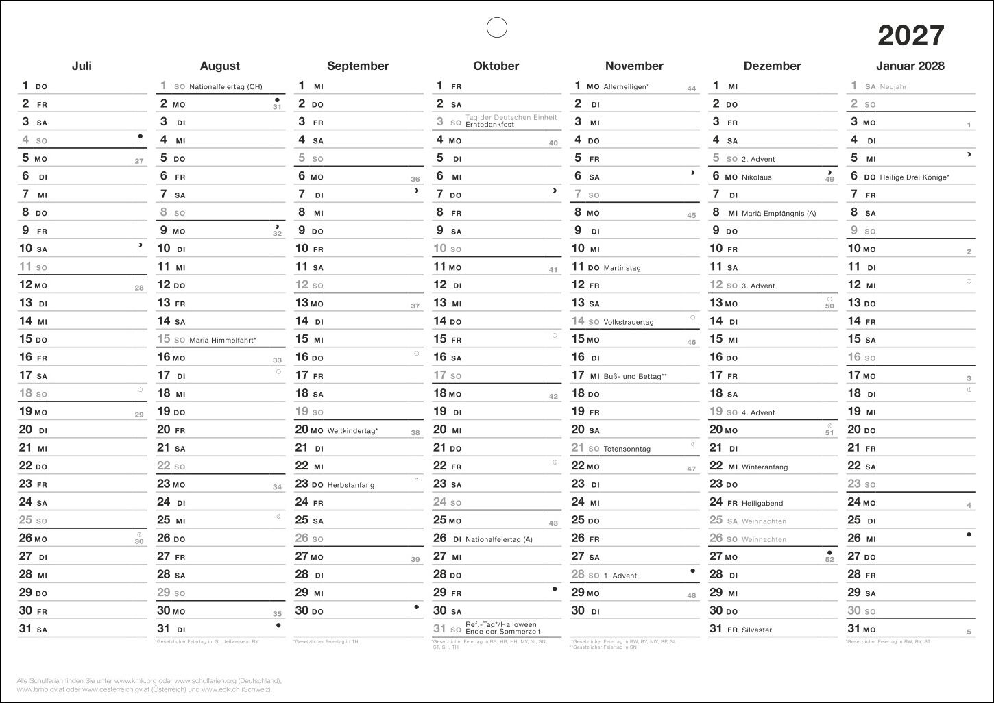 Schlichter Wandkalender 2027 im Minimalist Design: Eine Spalte pro Monat inklusive Feiertage - So geht Planen: Neutrale Organisationshilfe für alle wichtigen Verabredungen von Dezember des Vorjahres bis zum Januar des Folgejahres - Die Terminübersicht mit St...