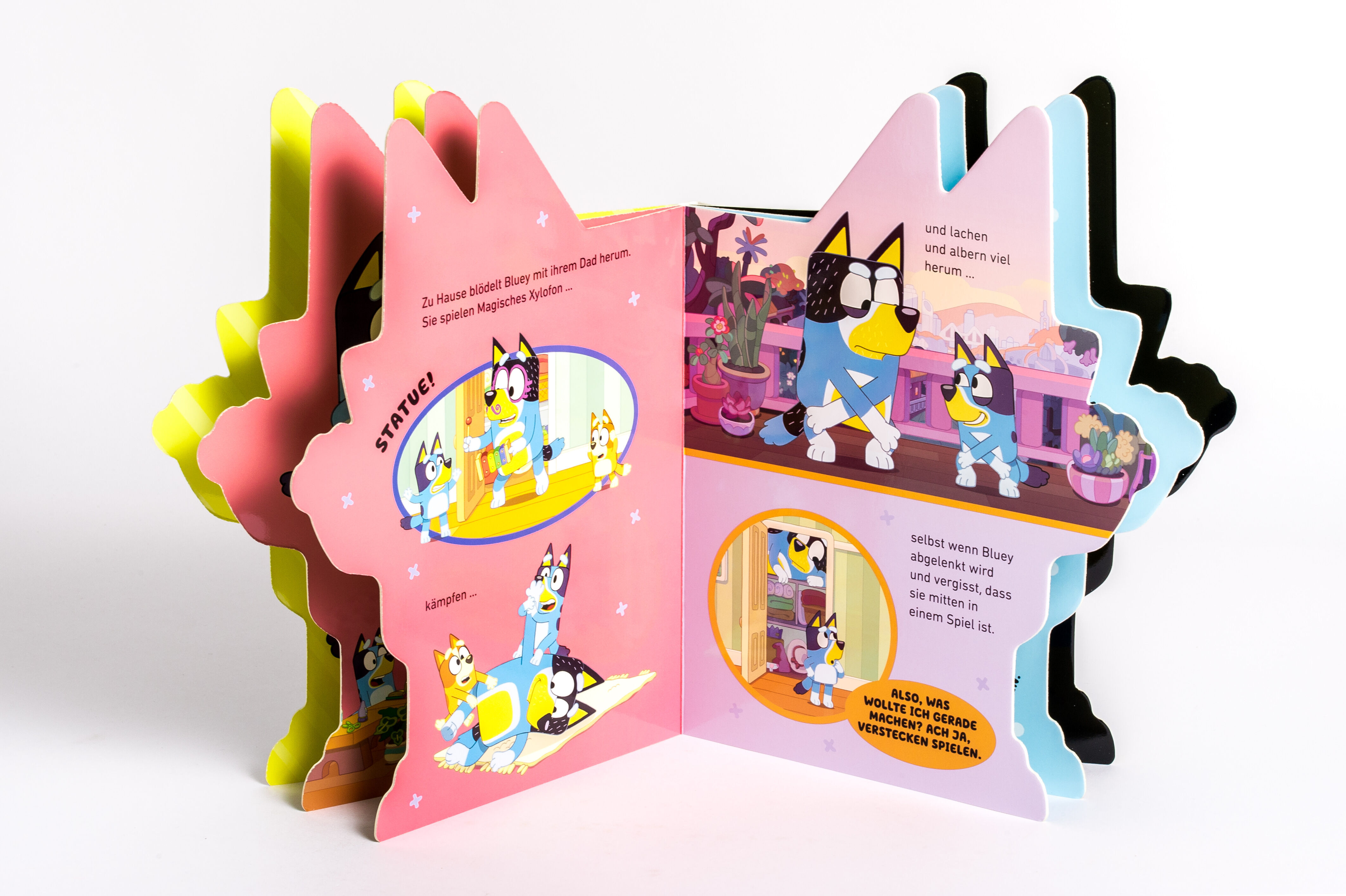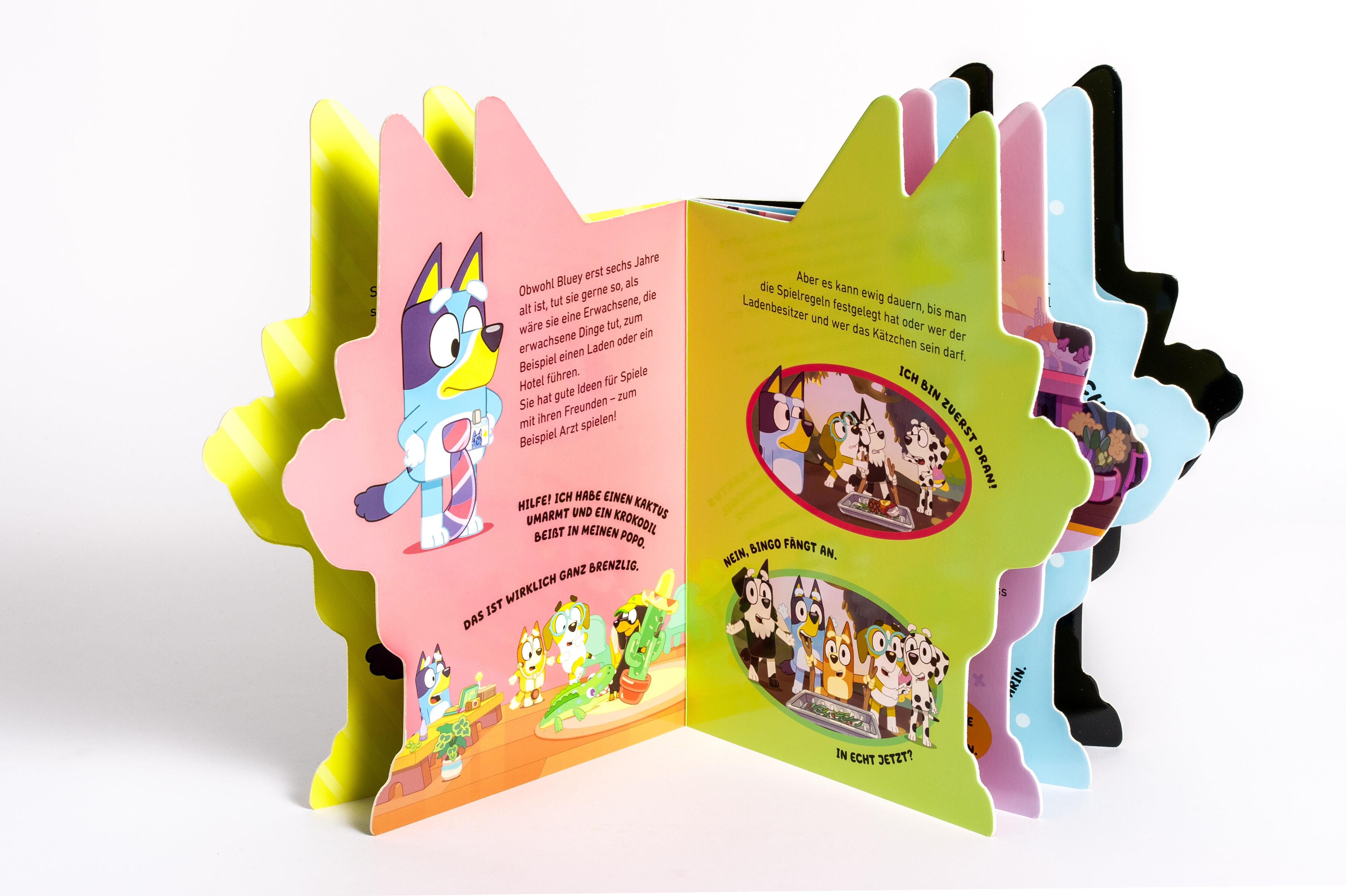 BLUEY - Alles über Bluey Kennst du Bluey? Alles, was die Fans über die kleine Heeler-Hündin Bluey wissen möchten, erfahren sie in diesem konturgestanzten Pappbilderbuch. Bluey erfindet jeden Tag die tollsten Spiele und nutzt ihre Fantasie, um jede Stunde des T...