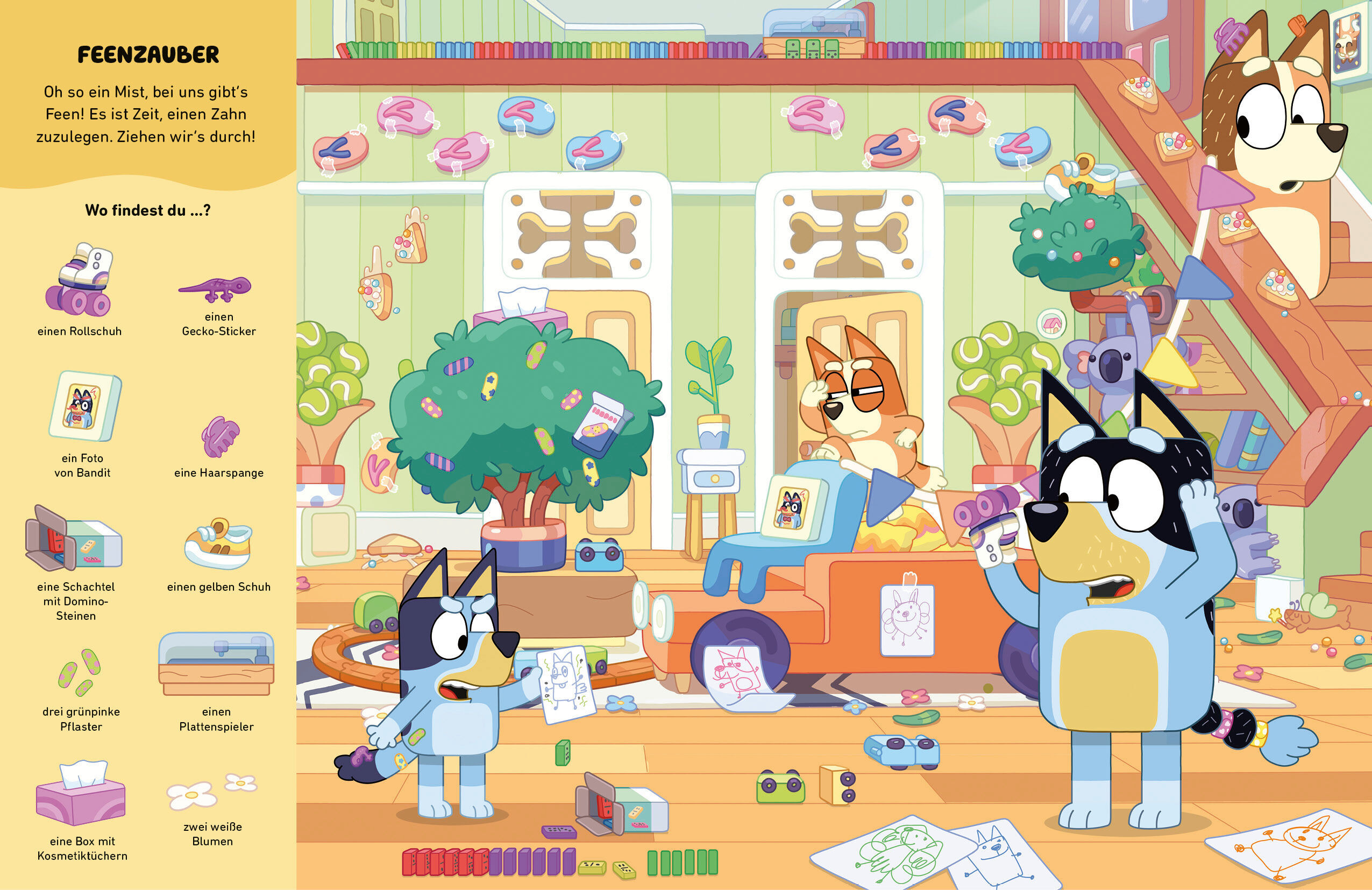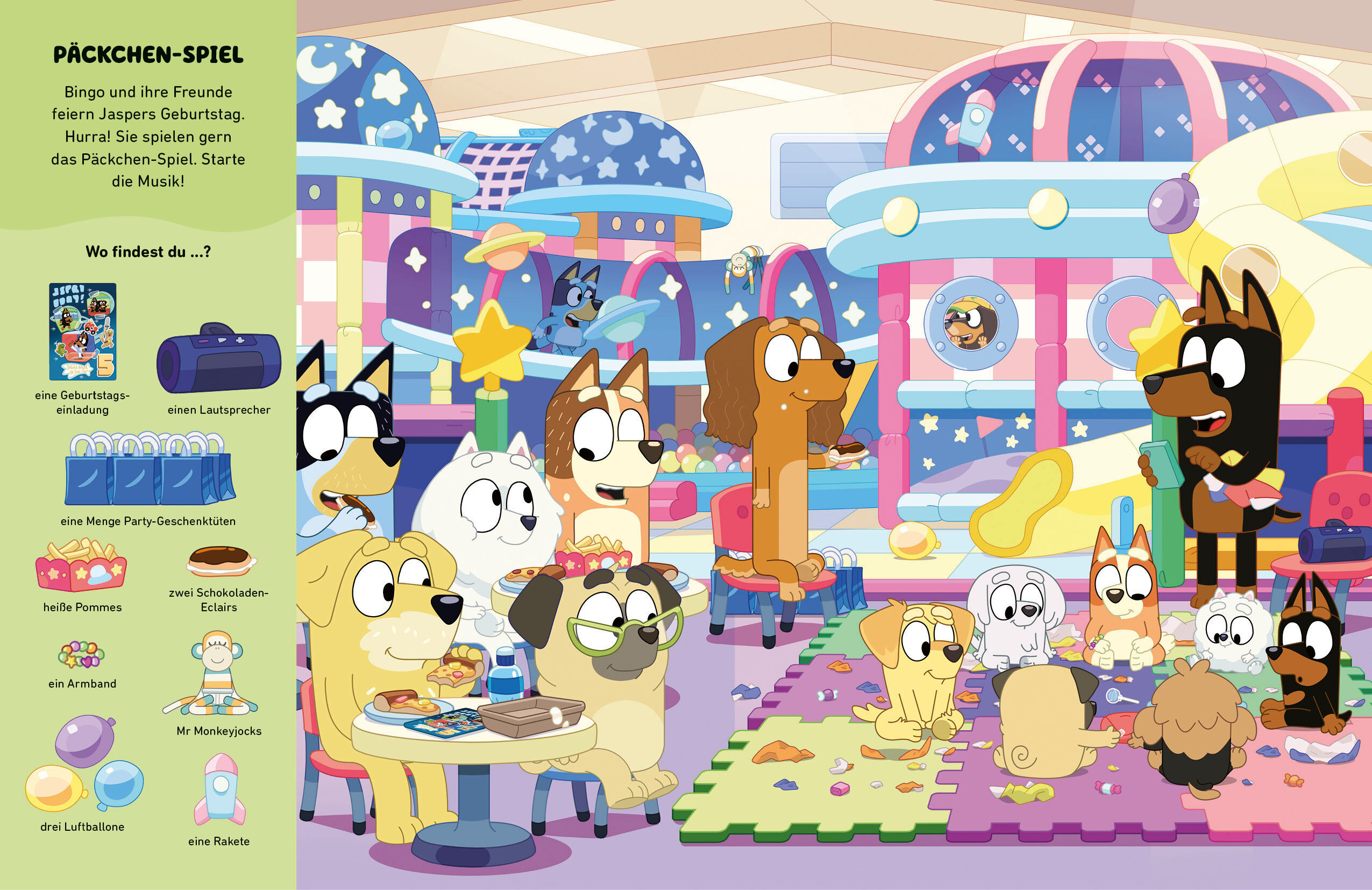Lustiger Such- und Wimmelspaß für alle BLUEY-Fans Auf 14 großformatigen Doppelseiten können bereits die jüngsten Bluey-Fans viele Dinge suchen und finden. Es gibt wimmelige Szenen, die Bluey, Bingo und ihre Freunde beim Spielen zu Hause, in der Kita und im Gar...