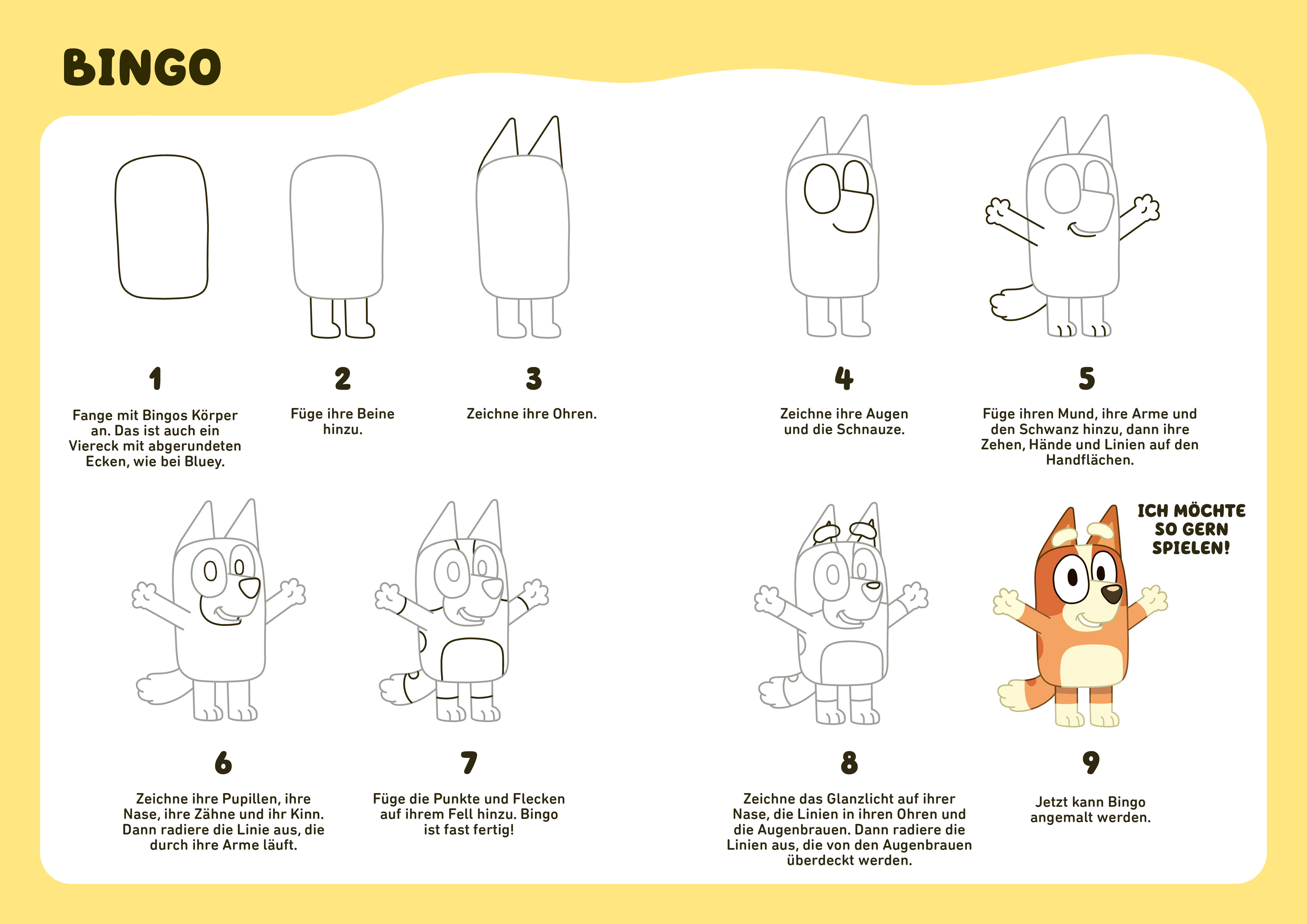 Schritt für Schritt zum BLUEY-Zeichner Für alle BLUEY-Fans, die lernen möchten, wie man Bluey, Bingo, Mum, Dad, Muffin, Socks und alle anderen Freunde und Verwandte aus der TV-Serie zeichnet. Man braucht nur Papier, Zeichenstifte, Radiergummi und los geht's! I...