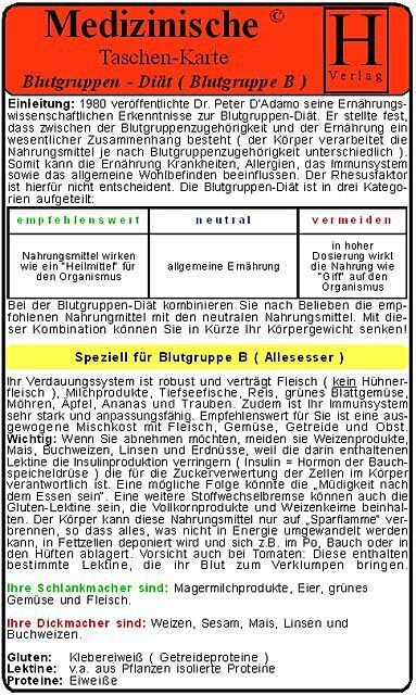 Blutgruppen-Diät - Blutgruppe B - Medizinische Taschen-Karte