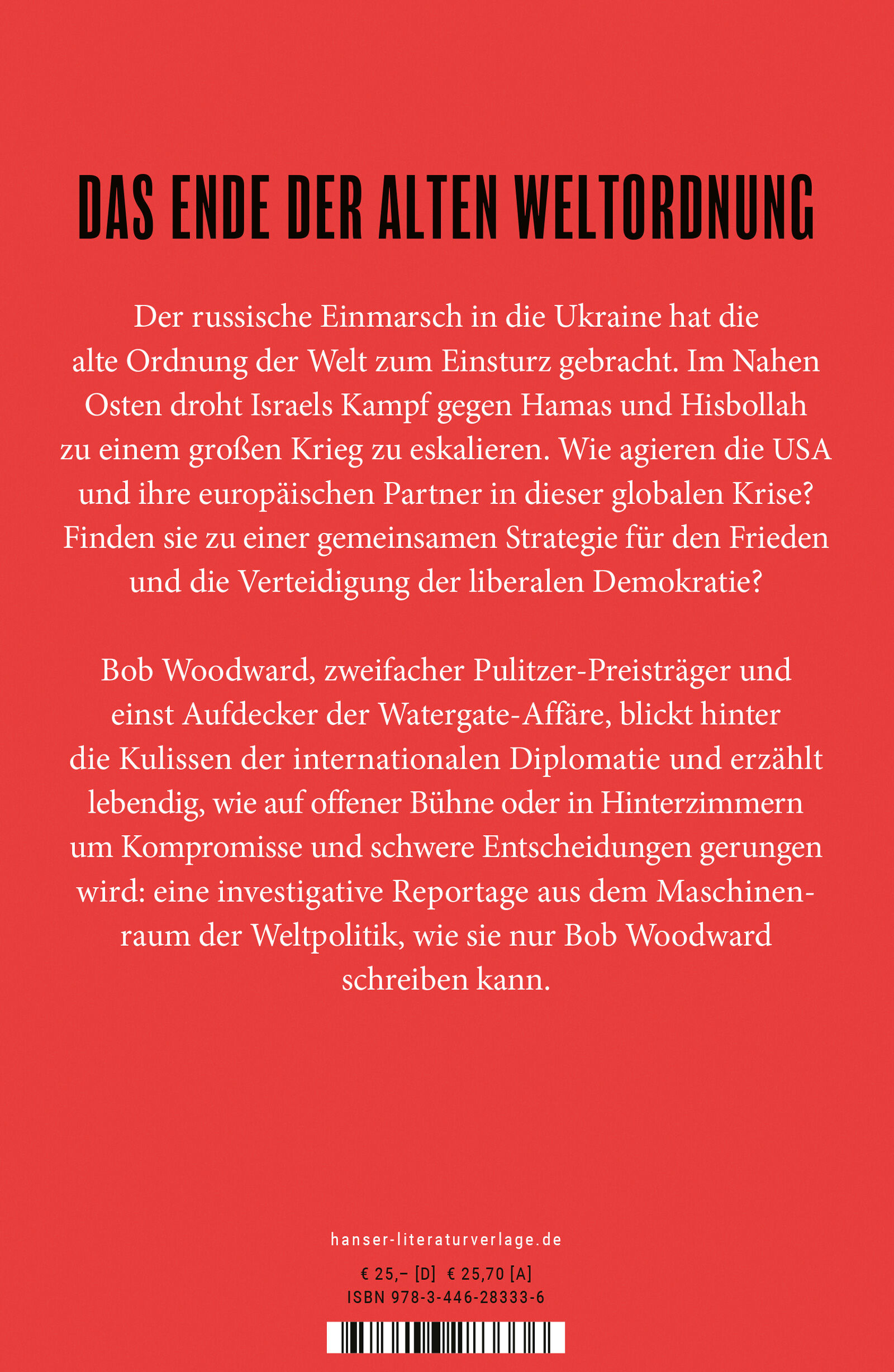 Das Ende der alten Weltordnung: Bob Woodward, zweifacher Pulitzer-Preisträger, blickt hinter die Kulissen der internationalen Diplomatie In der Ukraine toben die schwersten Kämpfe auf europäischem Boden seit 1945, in Israel ist ein Ende der Gewalt nicht abzuse...