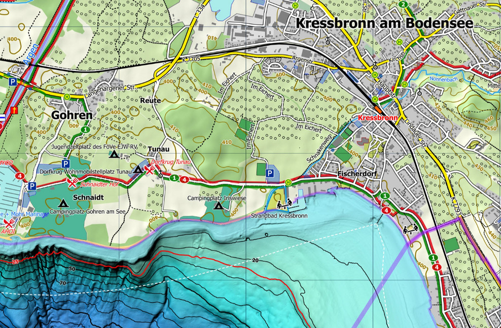 • Sehr genaue und aktuelle topografische Kartografie im Ideal-Maßstab 1 : 25 000 mit Einzelhäusern • 3D-Darstellung der Landschaft und Höhenlinien im 10 m Abstand inkl. Höhenlinienzahlen • Mit Tiefenprofil des Bodensees • Die Verkehrsstrukt...