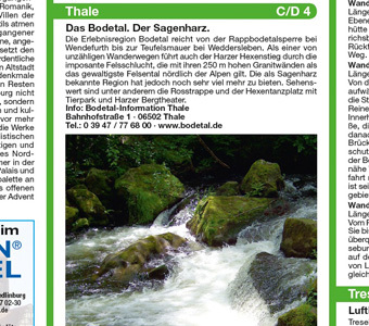 Viel unberührte Natur erwartet die Besucher im nördlichen Harzvorland rund um Quedlinburg und im nordöstlichen Teil des Harzes. Ein gut ausgebautes Rad- und Wanderwegenetz ist im Kartenausschnitt erkennbar, das v. a. im Naturschutzgebiet Selketal steile Anstie...