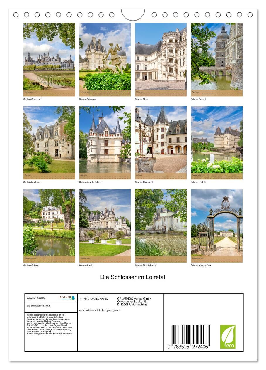 Die Schlösser im Loiretal (Wandkalender 2026 DIN A4 hoch), CALVENDO Monatskalender