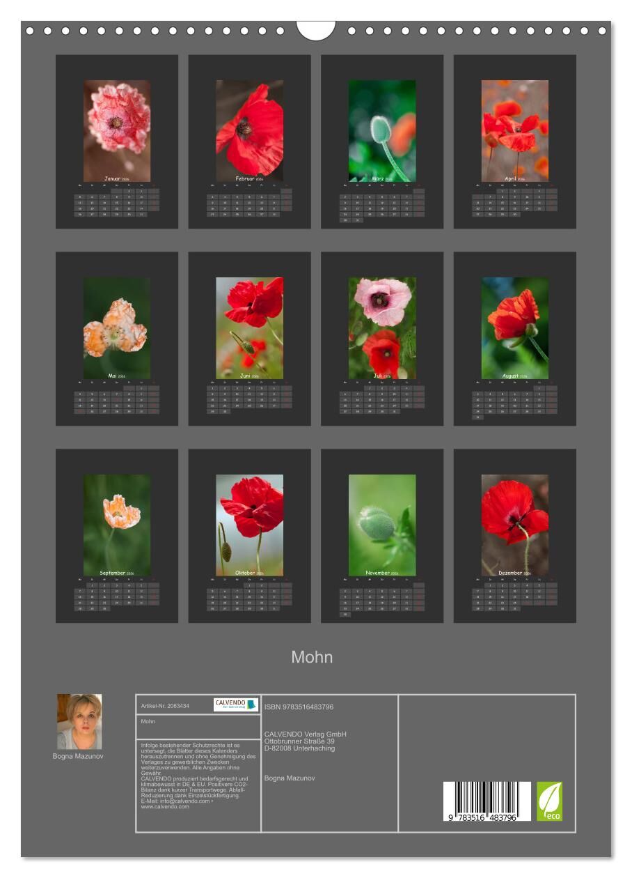 Mohn (Wandkalender 2026 DIN A3 hoch), CALVENDO Monatskalender