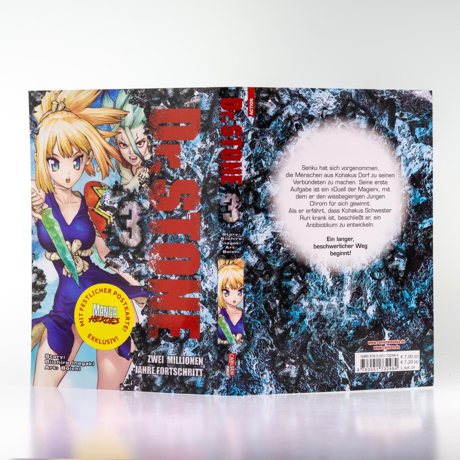 DR. STONE ist einer der beliebtesten Manga in Japan und begeistert mittlerweile auch Animefans auf der ganzen Welt! Ein Augenblick, und die Menschheit erstarrt auf mysteriöse Weise zu Stein. Als die beiden Highschool-Schüler Senku und Taiju mehr als dreitause...