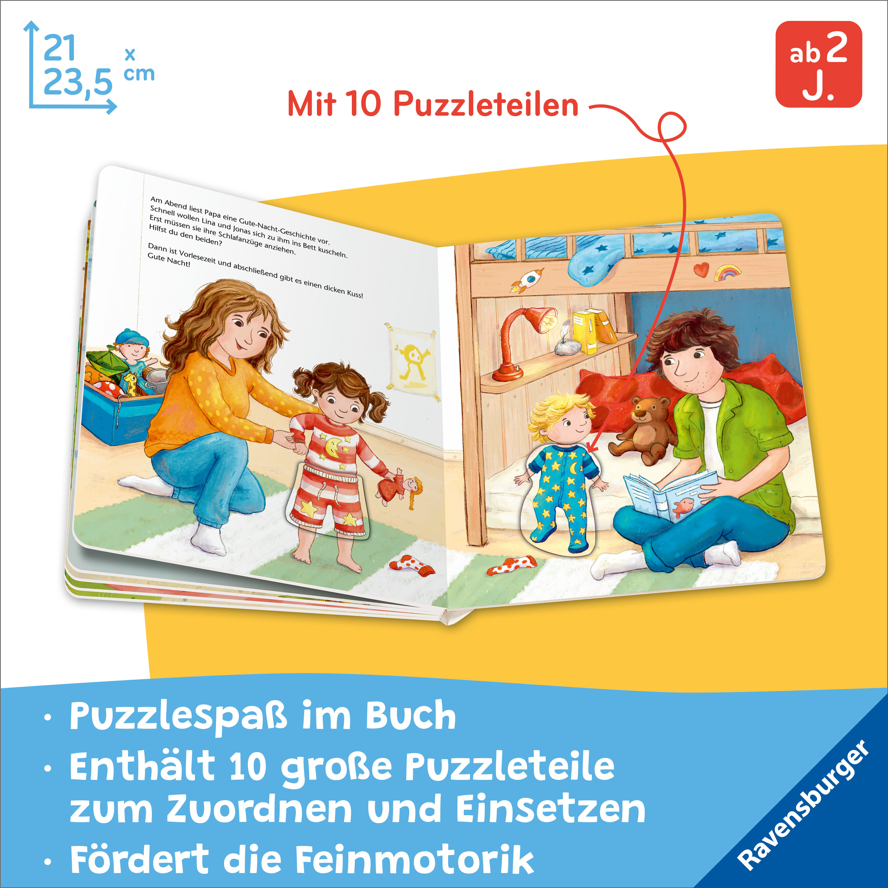 Großer Puzzlespaß für kleine Hände Beim Picknick kleckert Jonas mit seinem Schoko-Eis. Und im Wind fliegt Linas Mütze davon. Zehn Puzzleteile zum Thema Anziehsachen laden zum Zuordnen und Einsetzen ein. Siehst du, was die beiden noch zum Spielen im Sandkasten ...
