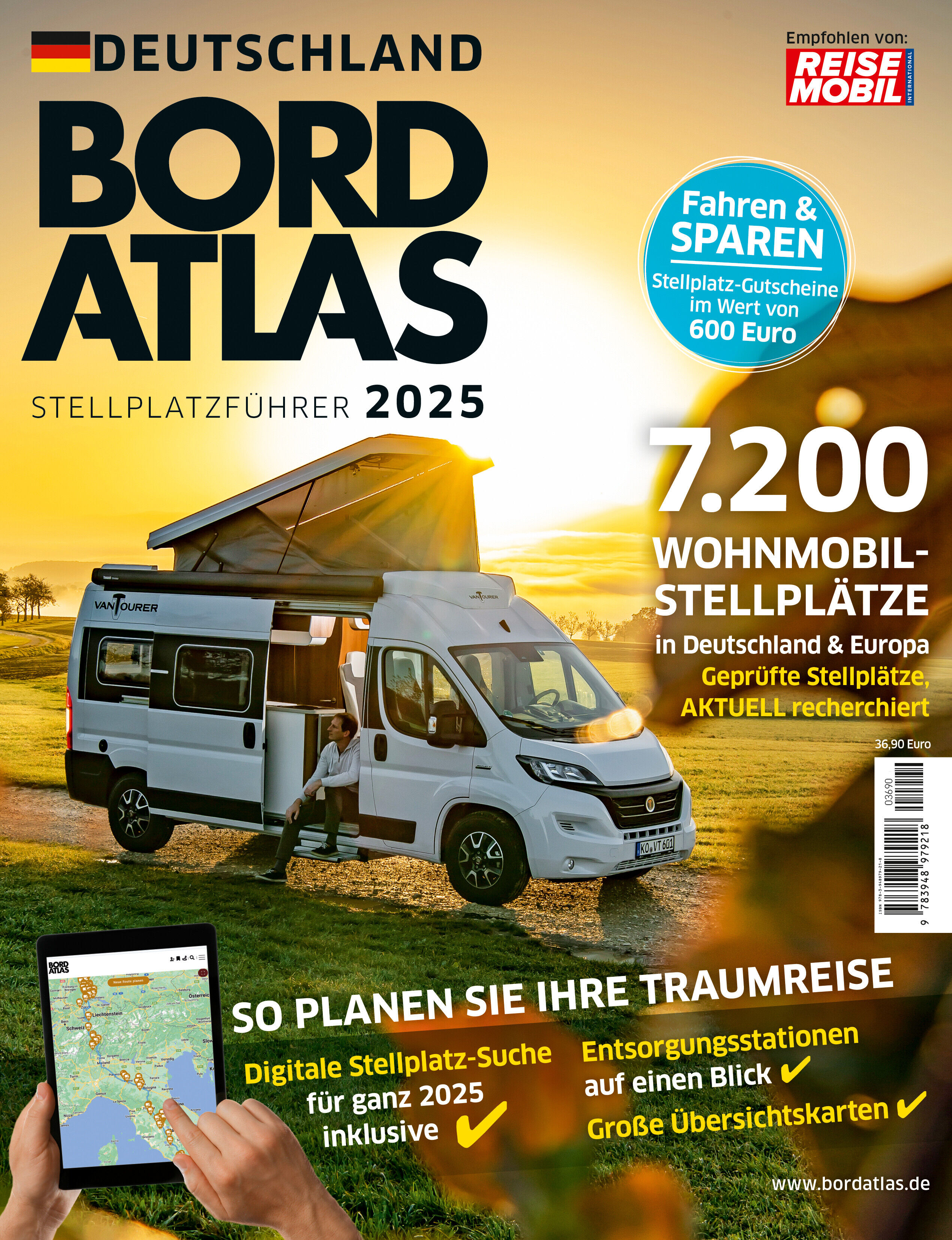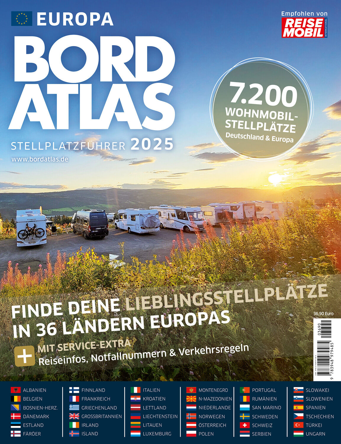 Im BORDATLAS Stellplatzführer 2025 erwarten Sie 7.200 Wohnmobil-Stellplätze in Deutschland und Europa, außerdem aktualisierte großformatige Landkarten. Perfekt um flexibel vor Ort den passenden Übernachtungsplatz zu finden oder natürlich, um im Voraus die näch...