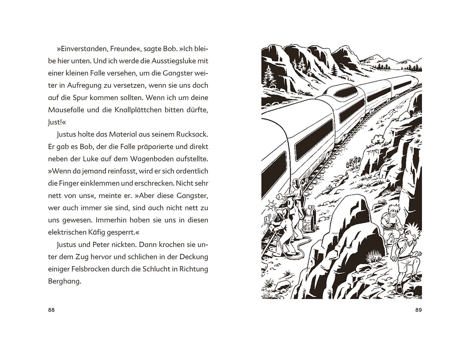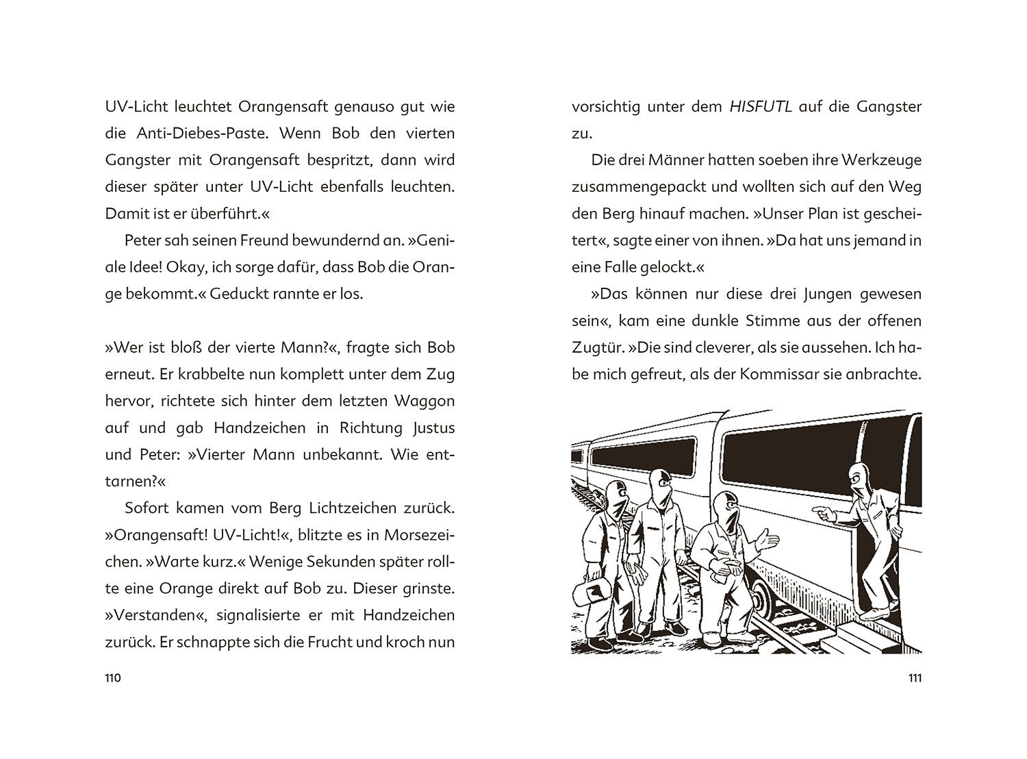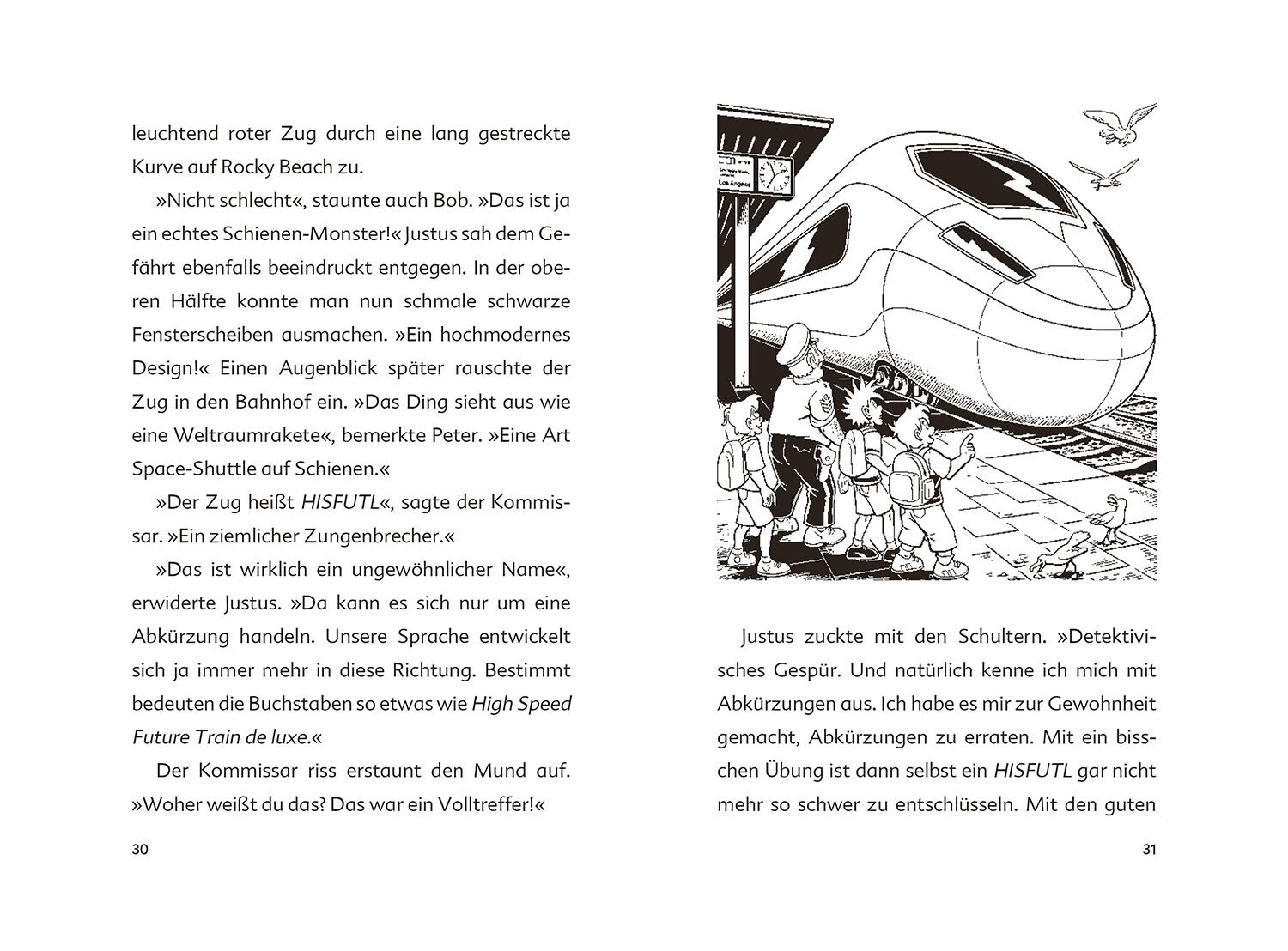 Im futuristischen Zug HISFUTL sollen die drei ??? wertvolle Computerchips bewachen. Doch schon kurz nach der Abfahrt häufen sich seltsame Vorfälle: Die Technik gerät außer Kontrolle und der Zug bleibt in der Windheulschlucht stehen. Wer steckt hinter der Sabot...