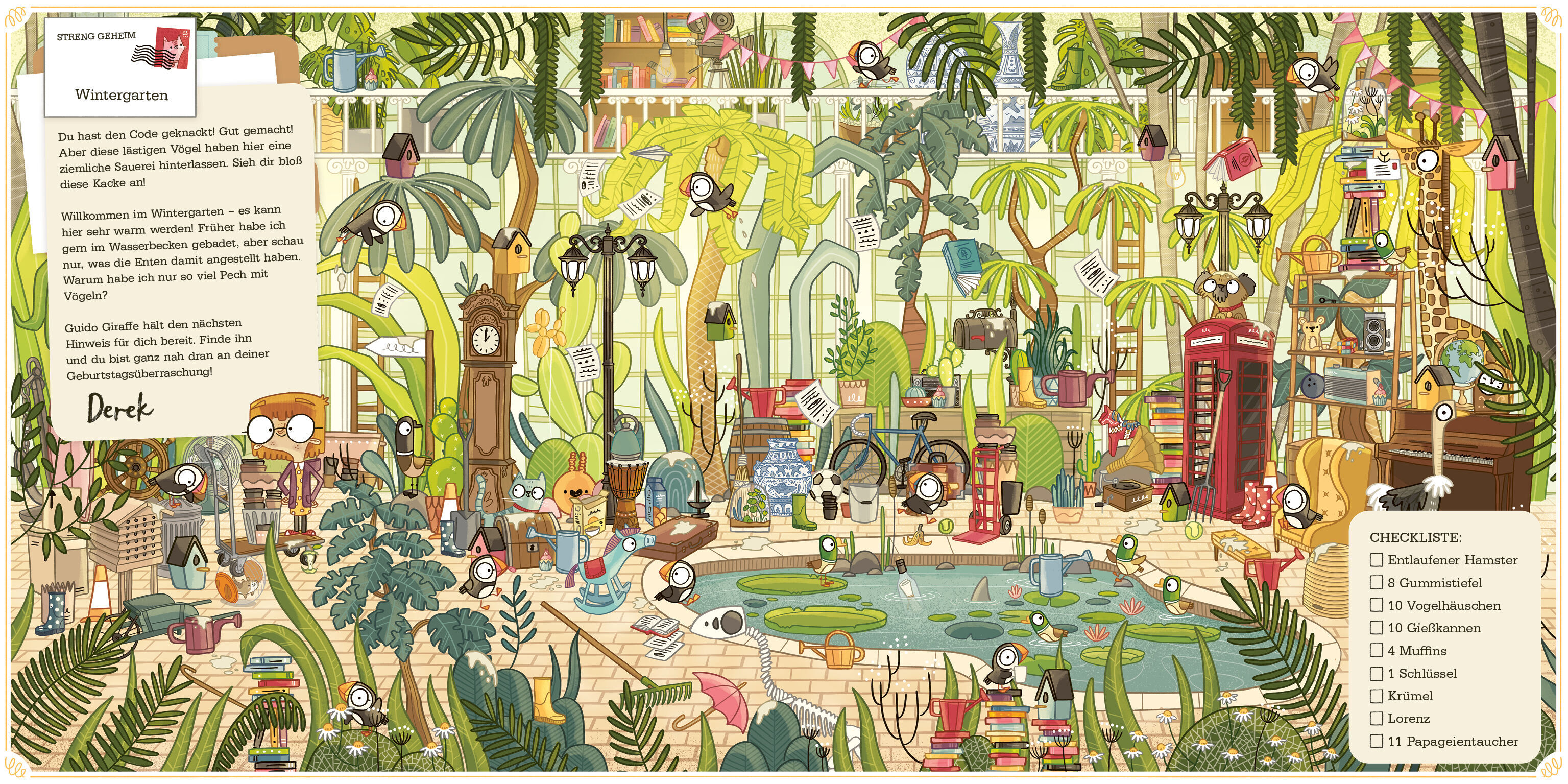 Penelope Strudel und die rätselhafte Schatzsuche Wimmelig-verrückter Rätselspaß Penelope Strudel hat Geburtstag! Ihr Onkel Derek hat irgendwo in der Villa Pudding eine Überraschung für sie versteckt. Doch überall wimmelt es nur so vor frechen Papageientauchern...