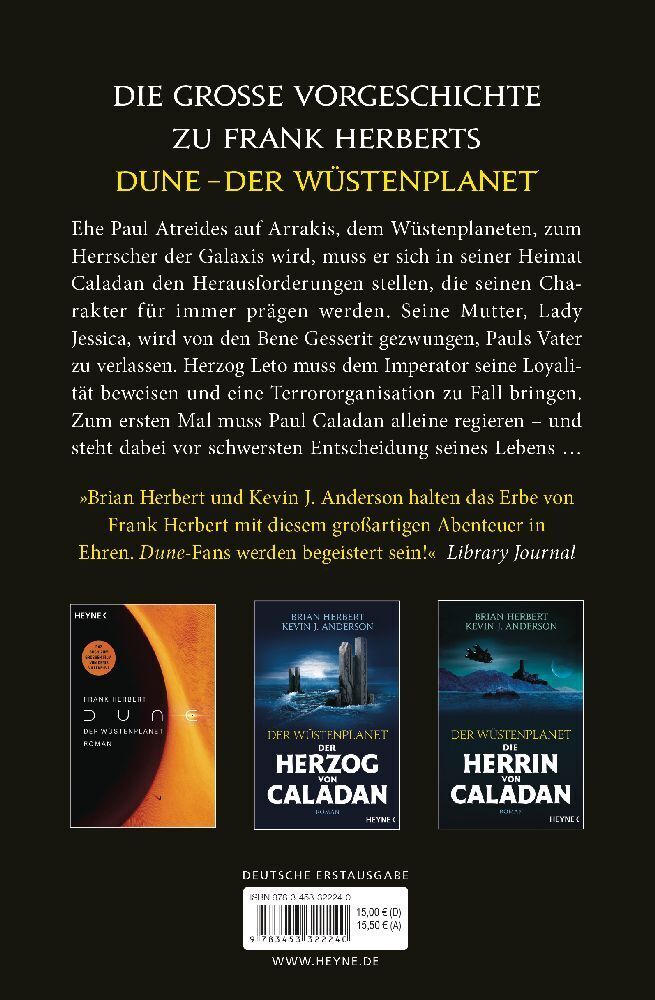 Lange, bevor er auf Arrakis, dem Wüstenplanet, zum Herrscher der Galaxis aufstieg, musste sich Paul Atreides auf seinem Heimatplaneten Caladan den Herausforderungen stellen, die seinen Charakter für immer prägen werden. Seine Mutter, Lady Jessica, wird vom Ord...