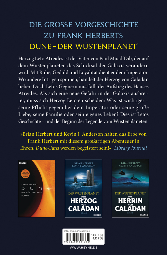 Herzog Leto Atreides, der Vater von Paul Muad'Dib, ist dem Imperator Shaddam loyal ergeben. Wo andere planen, handelt Leto lieber schnell und entschlossen. Doch die Familie Harkonnen glaubt, dass der Herzog von Caladan mächtiger wird, als es ihm ihrer Meinung ...