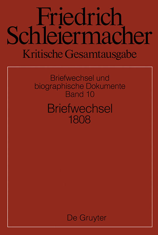 Friedrich Daniel Ernst Schleiermacher (17681834) engaged in extensive correspondence. This volume contains the letters from 1808, which include, among others, the famous betrothal letters from the period of his engagement along with Schleiermacher's correspon...