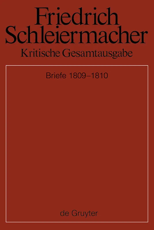 Friedrich Daniel Ernst Schleiermacher (17681834) engaged in extensive correspondence. This volume contains the letters from 1809 and 1810, which include, among others, the famous betrothal letters from the period of his engagement along with Schleiermacher's ...