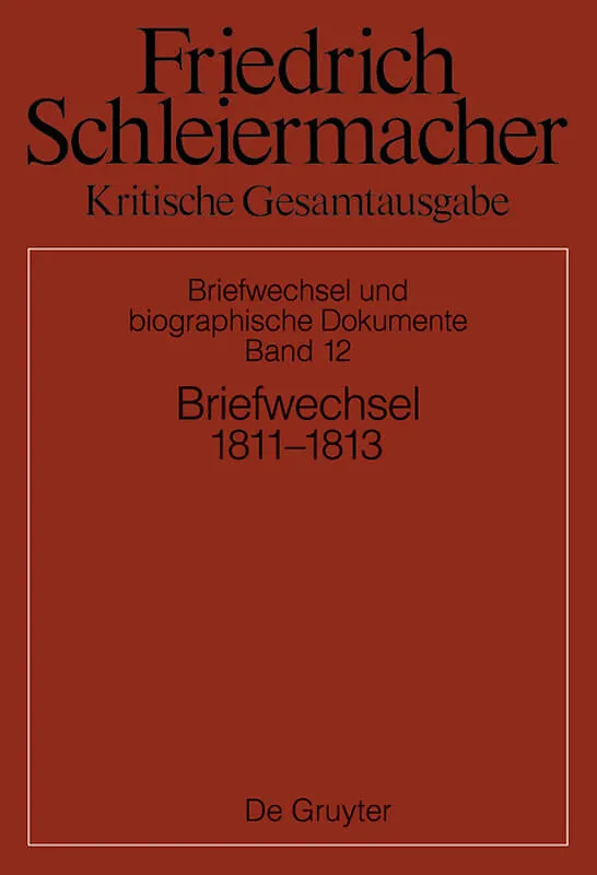 Friedrich Schleiermacher (17681834) was a prodigious letter-writer. Volume 12 of the fifth section of this critical edition of Schleiermacher's complete works contains his correspondence from January 1811 to June 1813. These letters were written when Schleier...