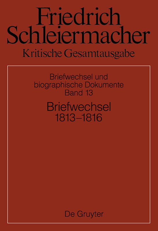 Friedrich Schleiermacher (17681834) was a prodigious letter-writer. Volume 13 of the fifth section of this critical edition of Schleiermacher's complete works contains his correspondence from July 1813 to December 1816. At the moment of the victory over Napol...