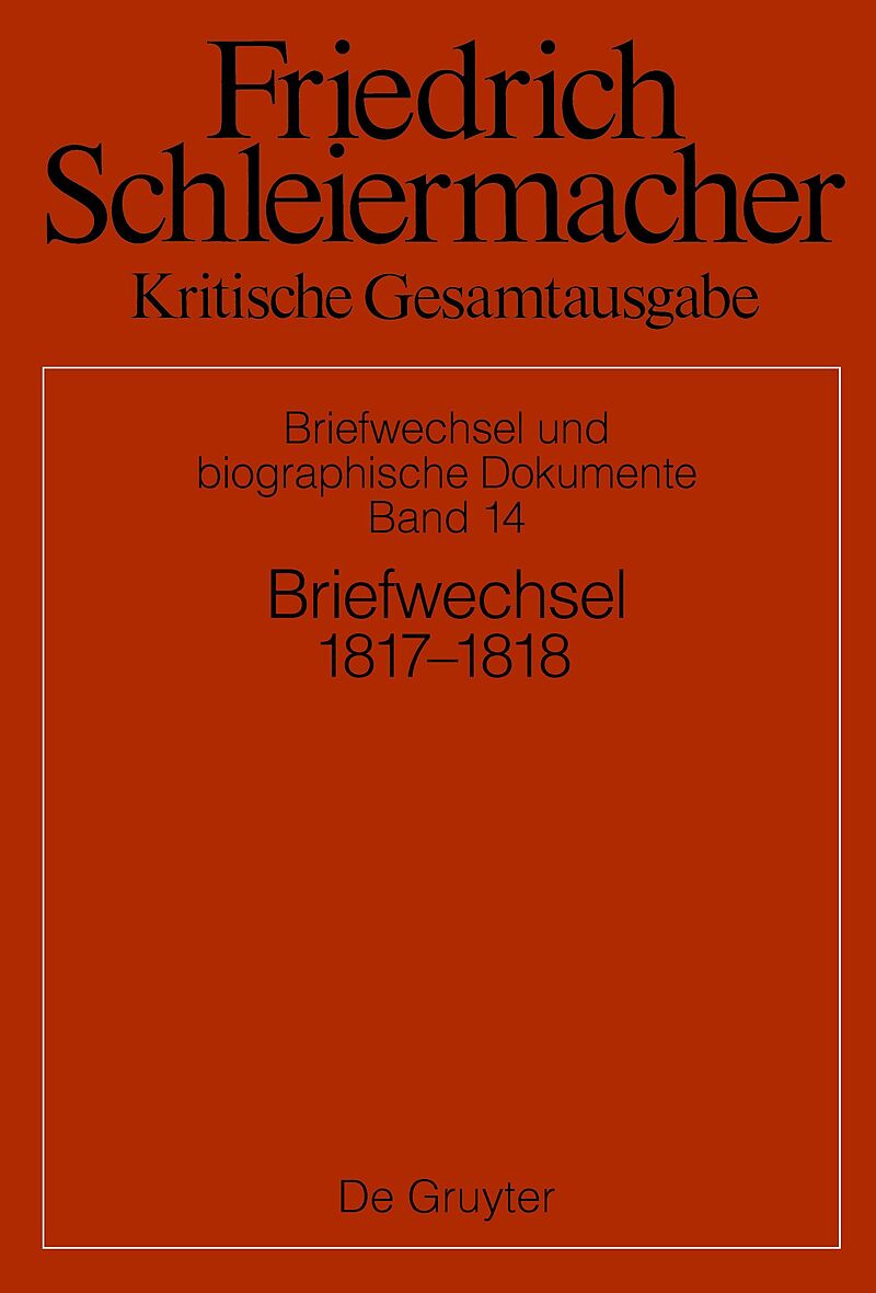 Volume V/14 encompasses and makes available 365 surviving letters written by and to Schleiermacher in 1817 and 1818. Autorentext Simon Gerber and Sarah Schmidt, BBAW, Germany. Klappentext Band V/14 der Kritischen Gesamtausgabe Friedrich Schleiermachers (1768-...