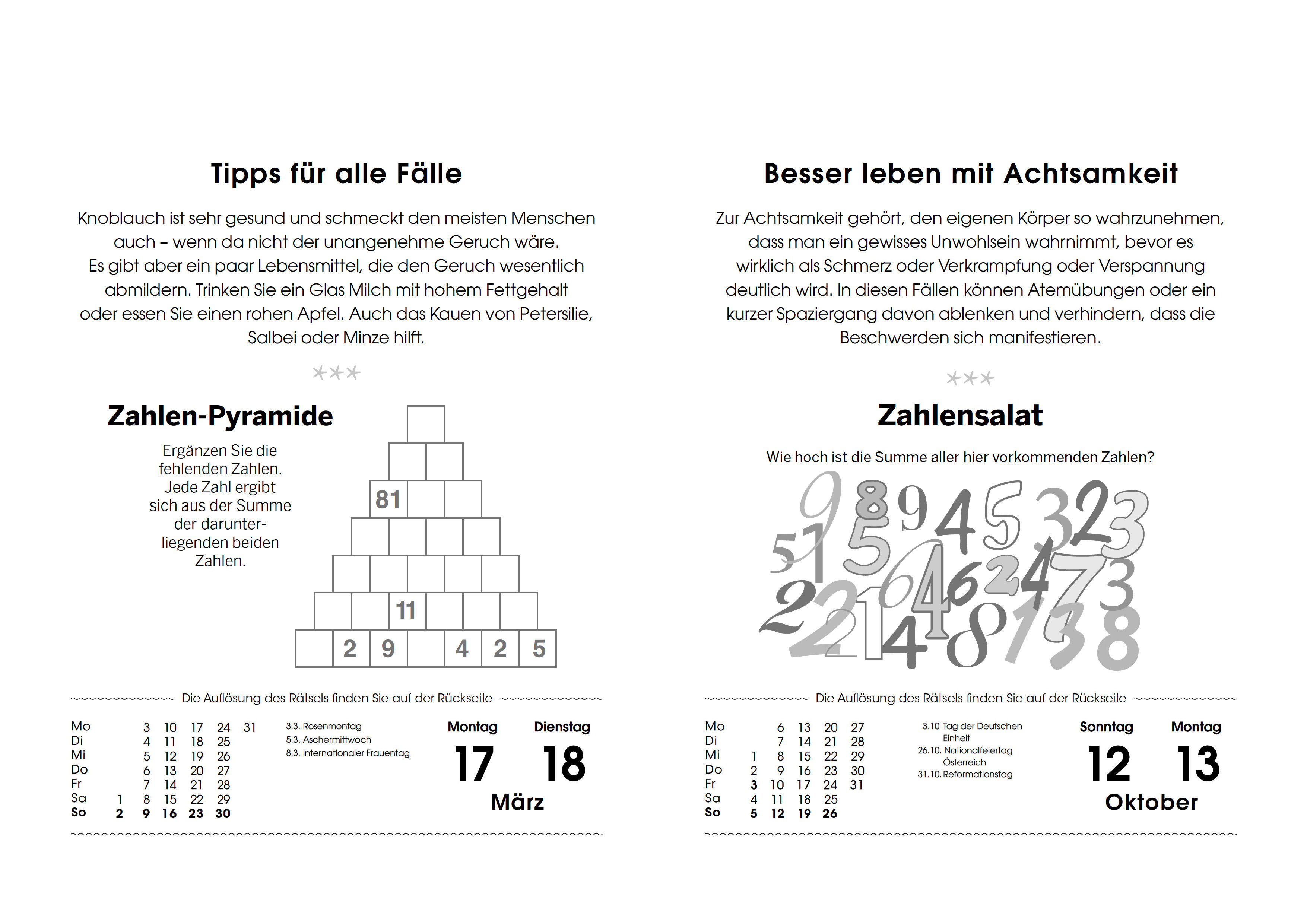 Der Ruhestand hält viele Überraschungen bereit. Mit Humor, guten Tipps für Körper, Geist und Seele, aber auch mit nachdenklichen Sprüchen lässt sich der neue Lebensabschnitt aufs Beste genießen. Damit die grauen Zellen fit bleiben, gibt es auf jedem Blatt auch...