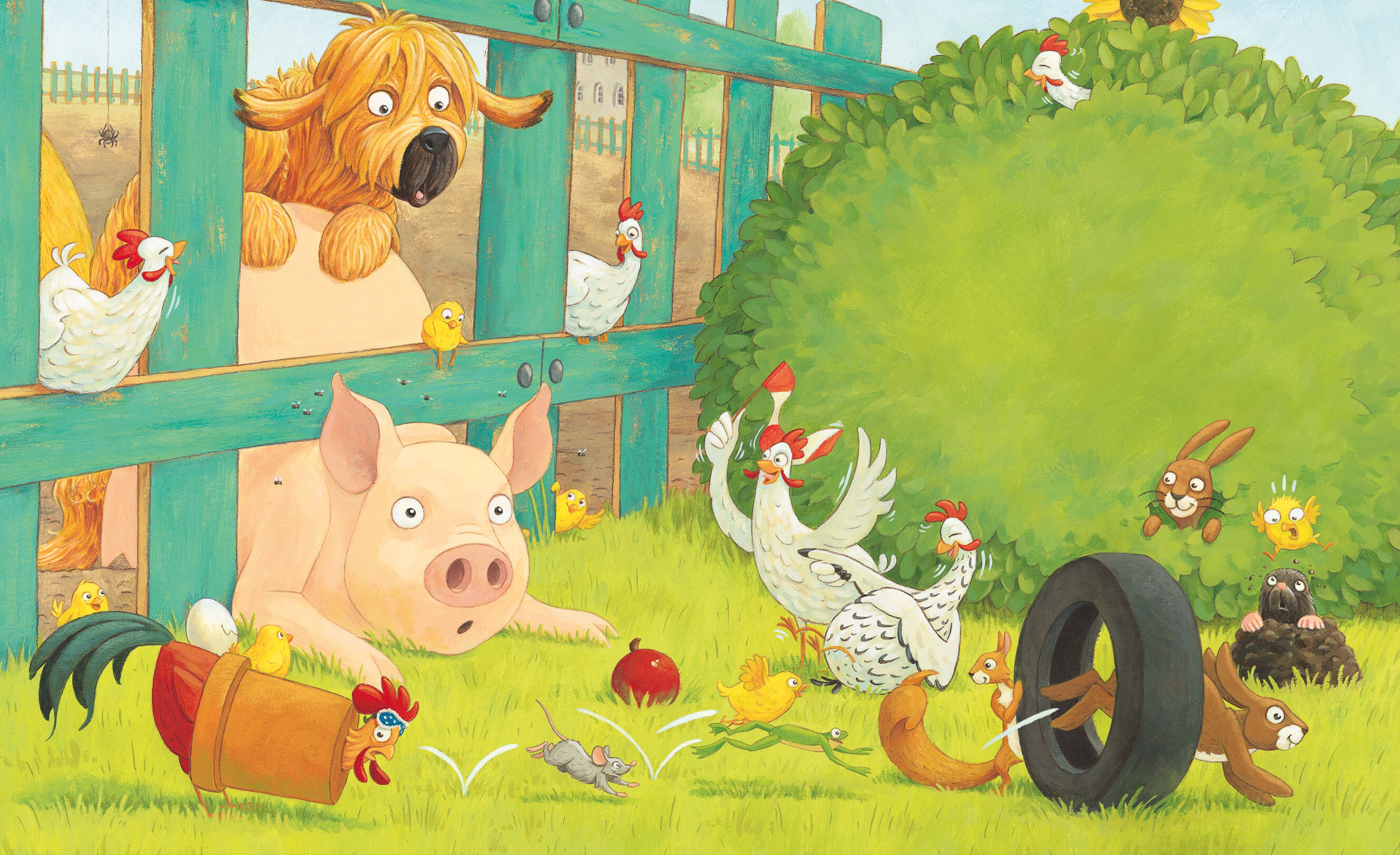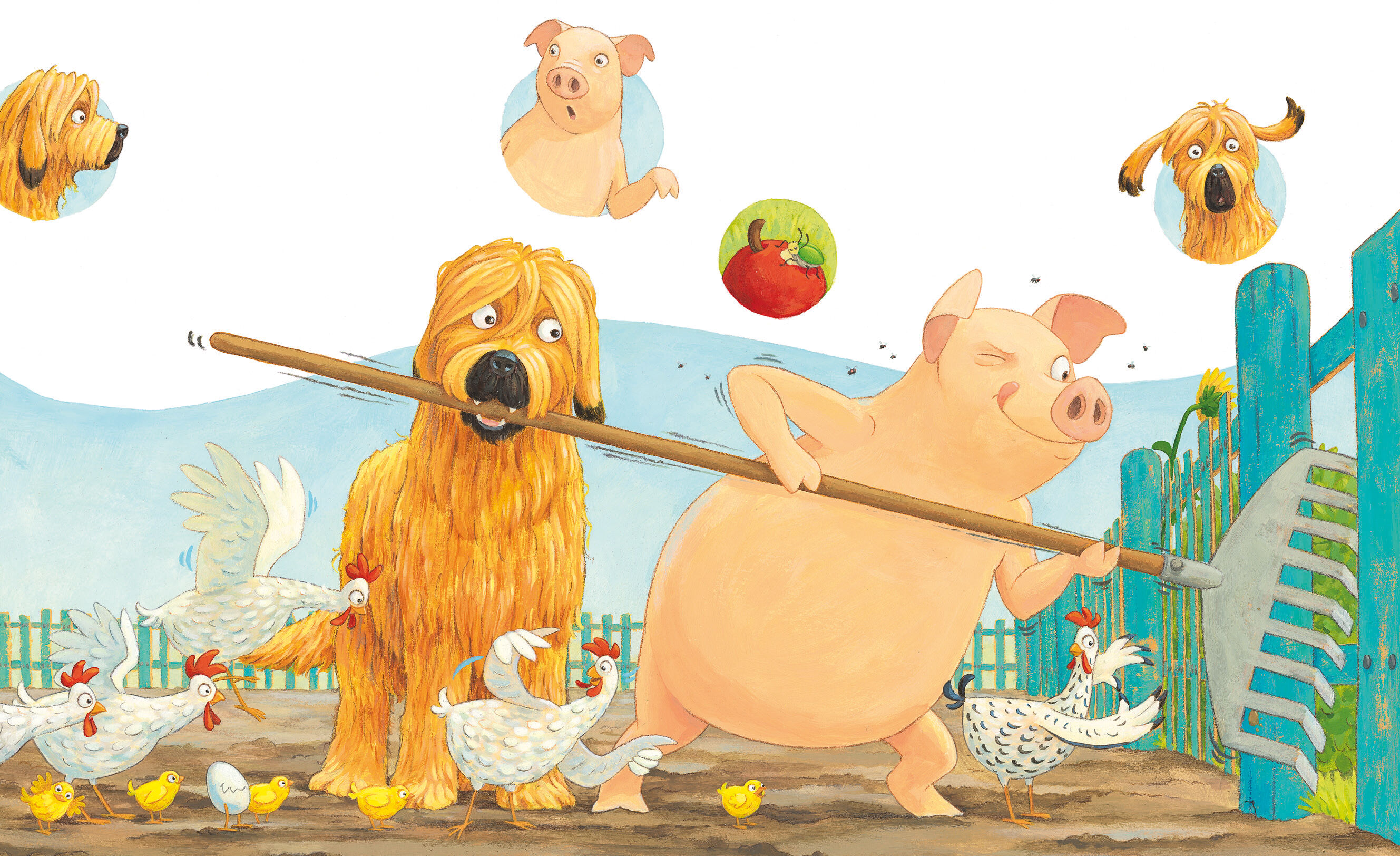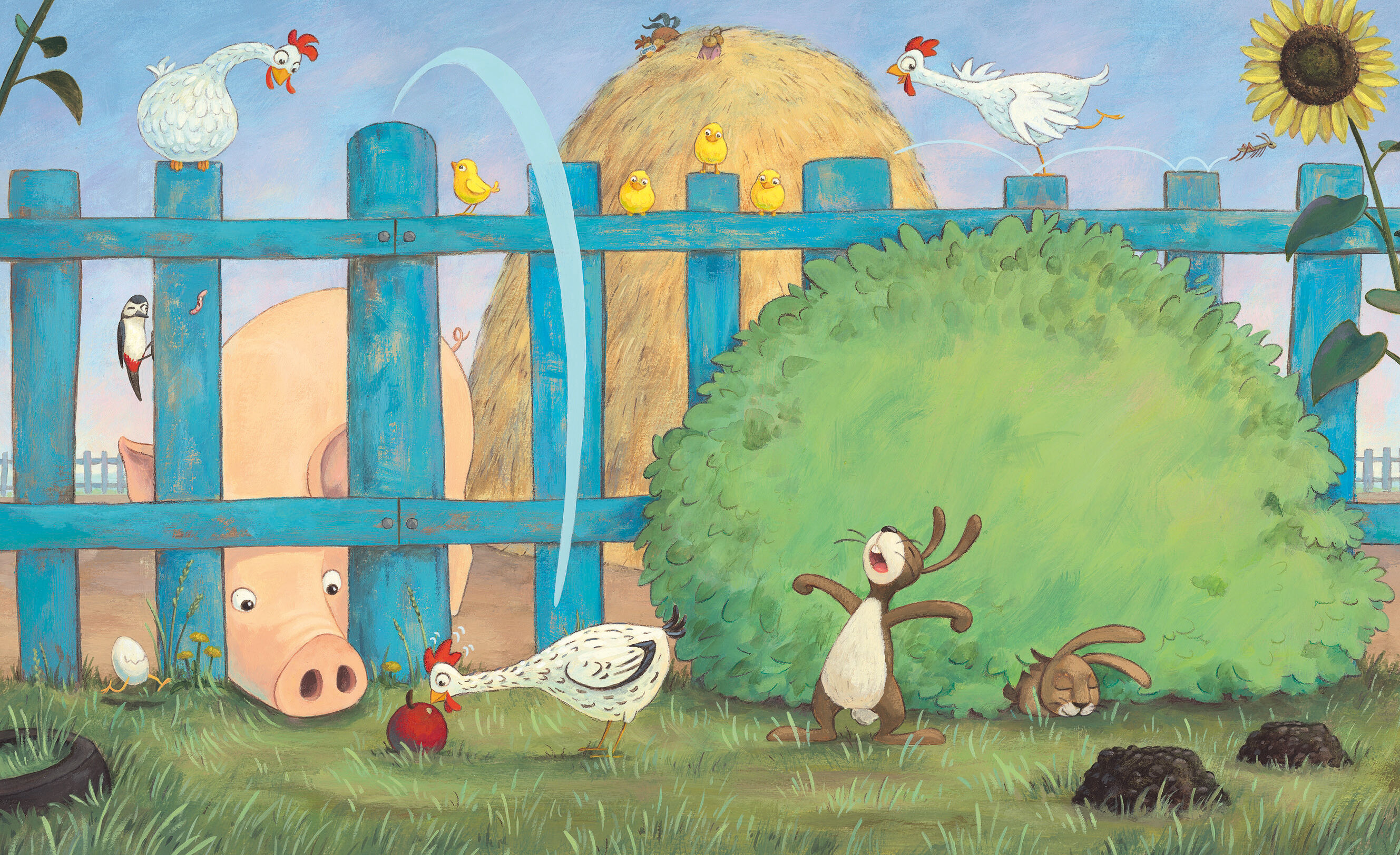 Ein Sonnenstrahl kitzelt Grunzbert wach. Alle Tiere schlafen noch, nur die Hühner scharren schon im Mist. Leise, damit Rosi nicht aufwacht, schleicht Grunzbert sich aus dem Stall. Als er sich verschlafen streckt, macht es plötzlich plumps. Er wirbelt herum, un...