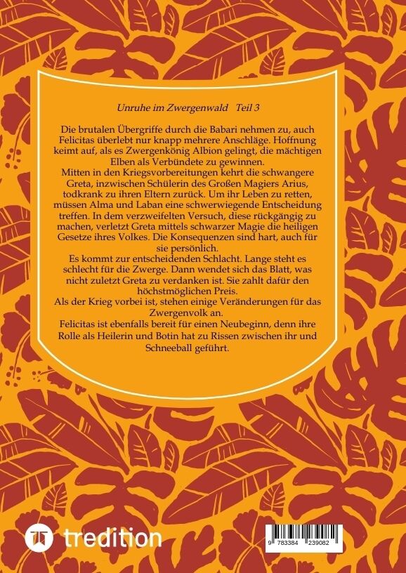 Mit diesem 3. Band endet die Geschichte von Felicitas, der Heilerkatze und Vermittlerin zwischen den Zwergen und den Tieren im Wald. Die Babari, Erzfeinde des Zwergenvolks, holen zum endgültigen Vernichtungsschlag aus. Doch bevor es zur alles entscheidenden Sc...