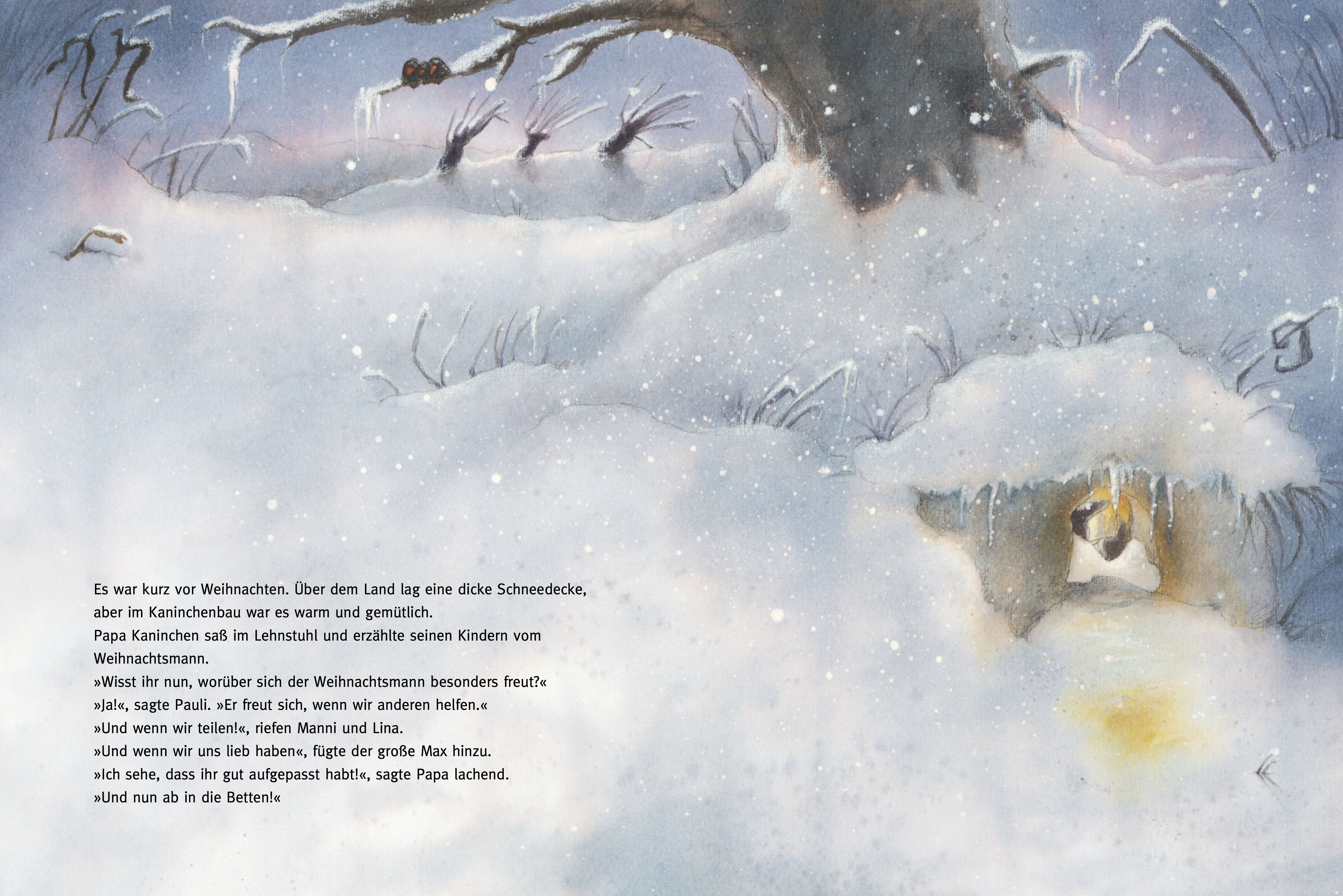 Eine warmherzige Weihnachtsgeschichte Papa Kaninchen erklärt seinen Kindern, dass der Weihnachtsmann sich freut, wenn wir teilen und einander helfen. Pauli setzt das Gelernte sogleich in die Tat um. Er hat Mitleid mit den hungernden Waldtieren und plündert fü...
