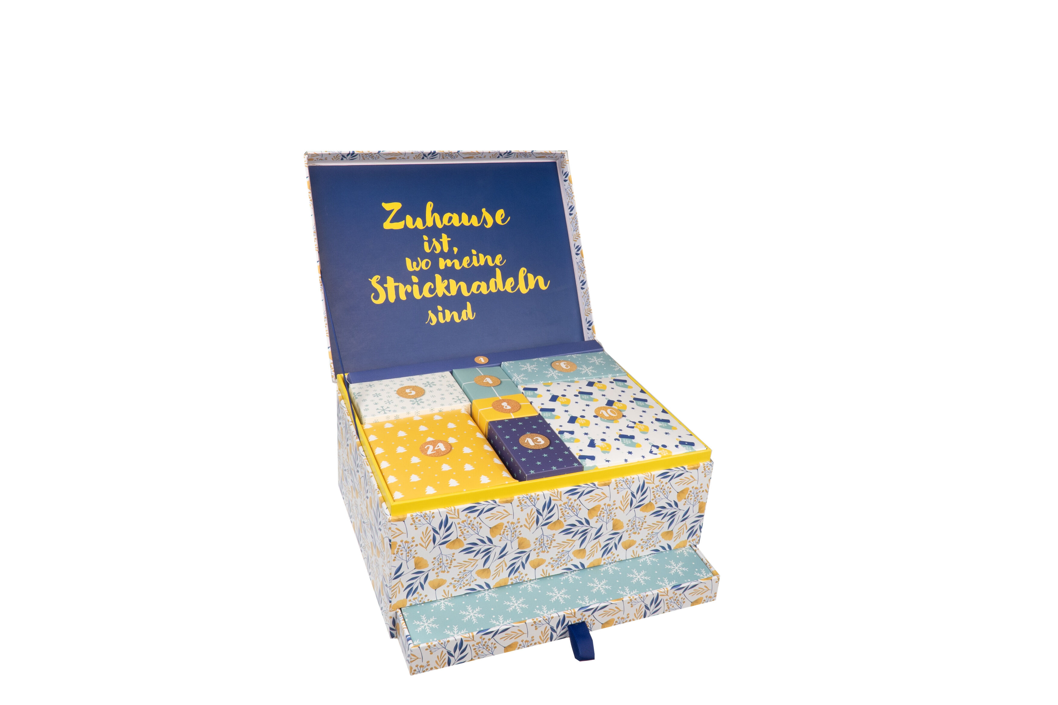 Stricke in 24 Tagen deine neuen Lieblingsstücke. In diesem Adventskalender verbirgt sich hinter jedem Türchen entweder ein Teil der detaillierten Schritt-für-Schritt-Anleitungen für eine Mütze und einen Schal, Strickzubehör, Garn oder eine kleine Überraschung...