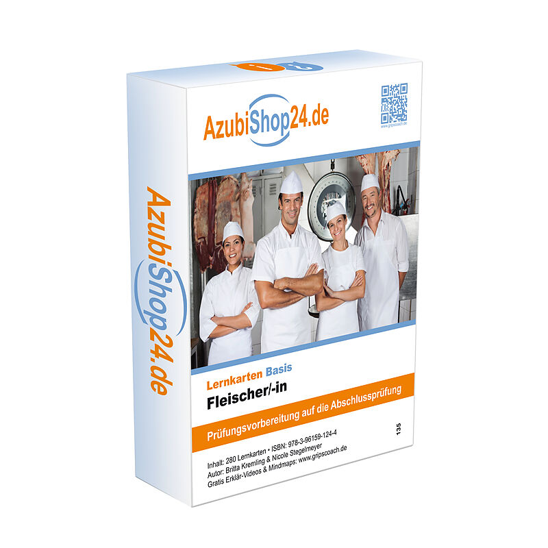 Lernkarten Fleischer / Fleischerin Prüfungsvorbereitung Erfolgreiches Lernen für die Abschlussprüfung mit unseren Lernkarten für Fleischer / Fleischerin. Der Klassiker! Mit wichtigem Prüfungswissen vollgepackte 280 Lernkarten für Auszubildende. Mit der bewähr...