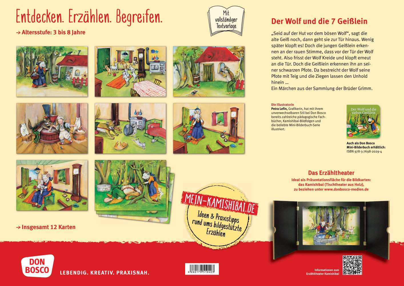Mit dem Kamishibai Bildkartenset "Der Wolf und die 7 Geißlein" erwecken Sie das Märchen aus der Sammlung der Gebrüder Grimm zum Leben. Zugleich vermitteln Sie den Kindern sozial-emotionale Kompetenzen, animieren Sie zum Sprechen und verbessern dabei ihr Sprachgefühl!