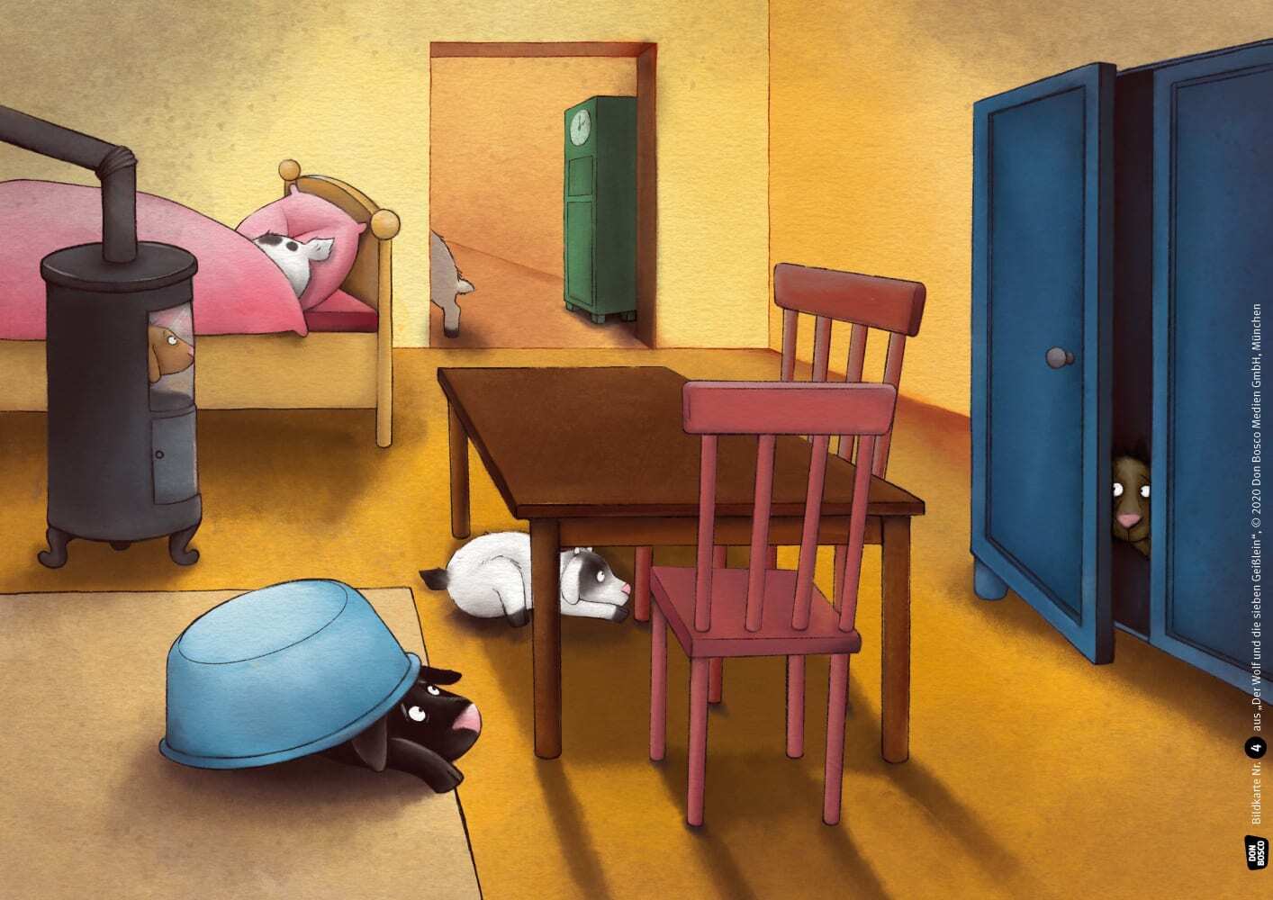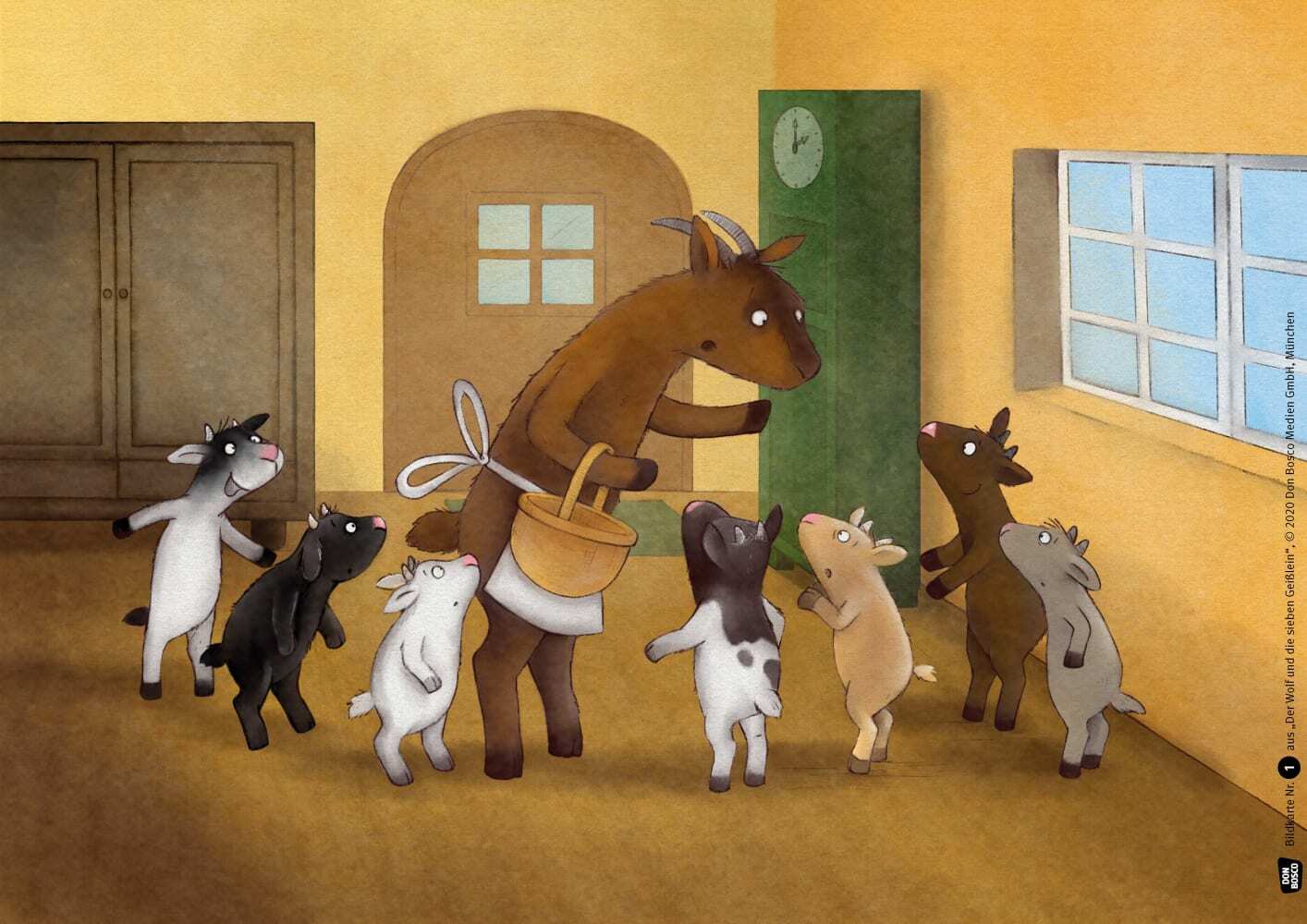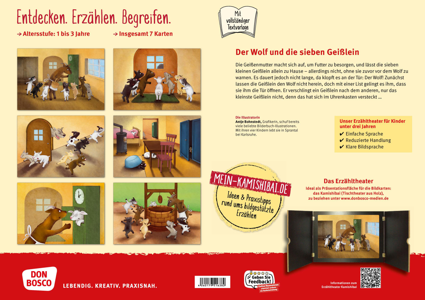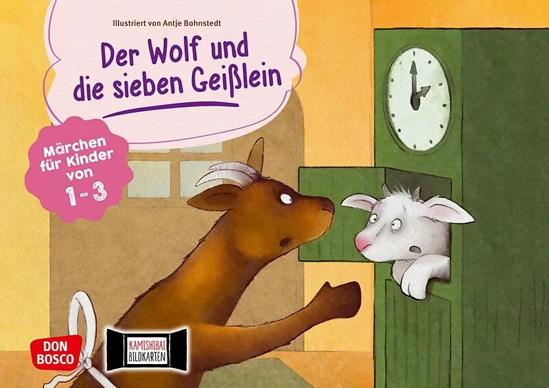 Die sieben Geißlein sind alleine zu Hause. Da klopft es an der Tür: der Wolf! Das beliebte Märchen fürs Kamishibai in einfacher, deutlicher Bildsprache, mit reduziertem Inhalt. Grimms Märchen für die Kleinsten: der Wolf und die sieben Geißlein Tiermärchen eign...
