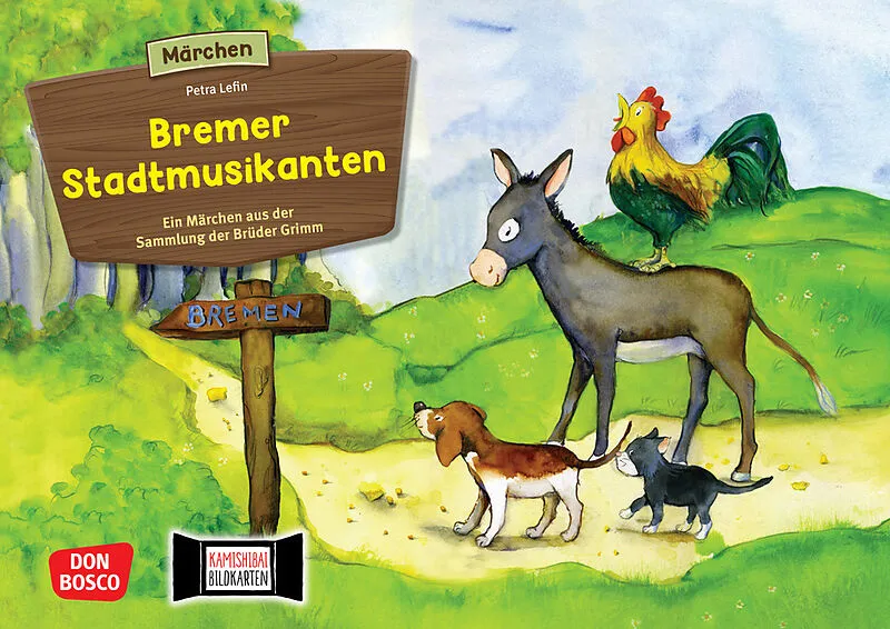 Mit dem Kamishibai Bildkartenset Die Bremer Stadtmusikanten erwecken Sie das Märchen aus der Sammlung der Gebrüder Grimm zum Leben. Zugleich vermitteln Sie den Kindern sozial-emotionale Kompetenzen, animieren Sie zum Sprechen und verbessern dabei ihr Sprachgefühl!