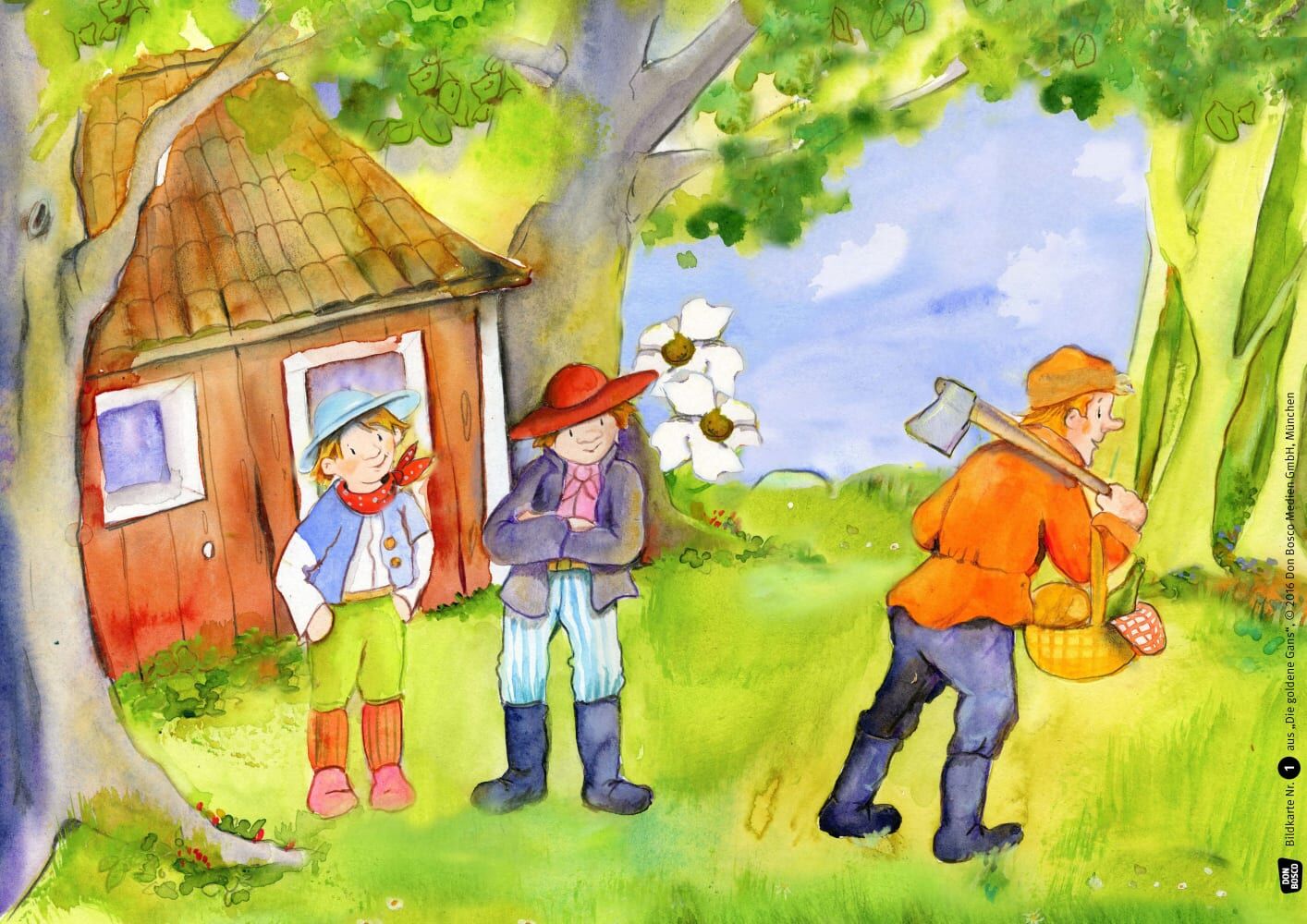 Perfekt für ein Projekt über Märchen in Kita und Grundschule: Kamishibai-Bildkarten und Textvorlage zum Dummling-Märchen aus der Sammlung der Brüder Grimm Als Dummling in den Wald zum Holzhacken geht, teilt er seinen Proviant mit einem geheimnisvollen grauen M...