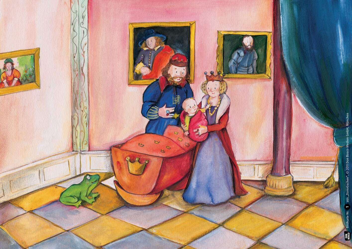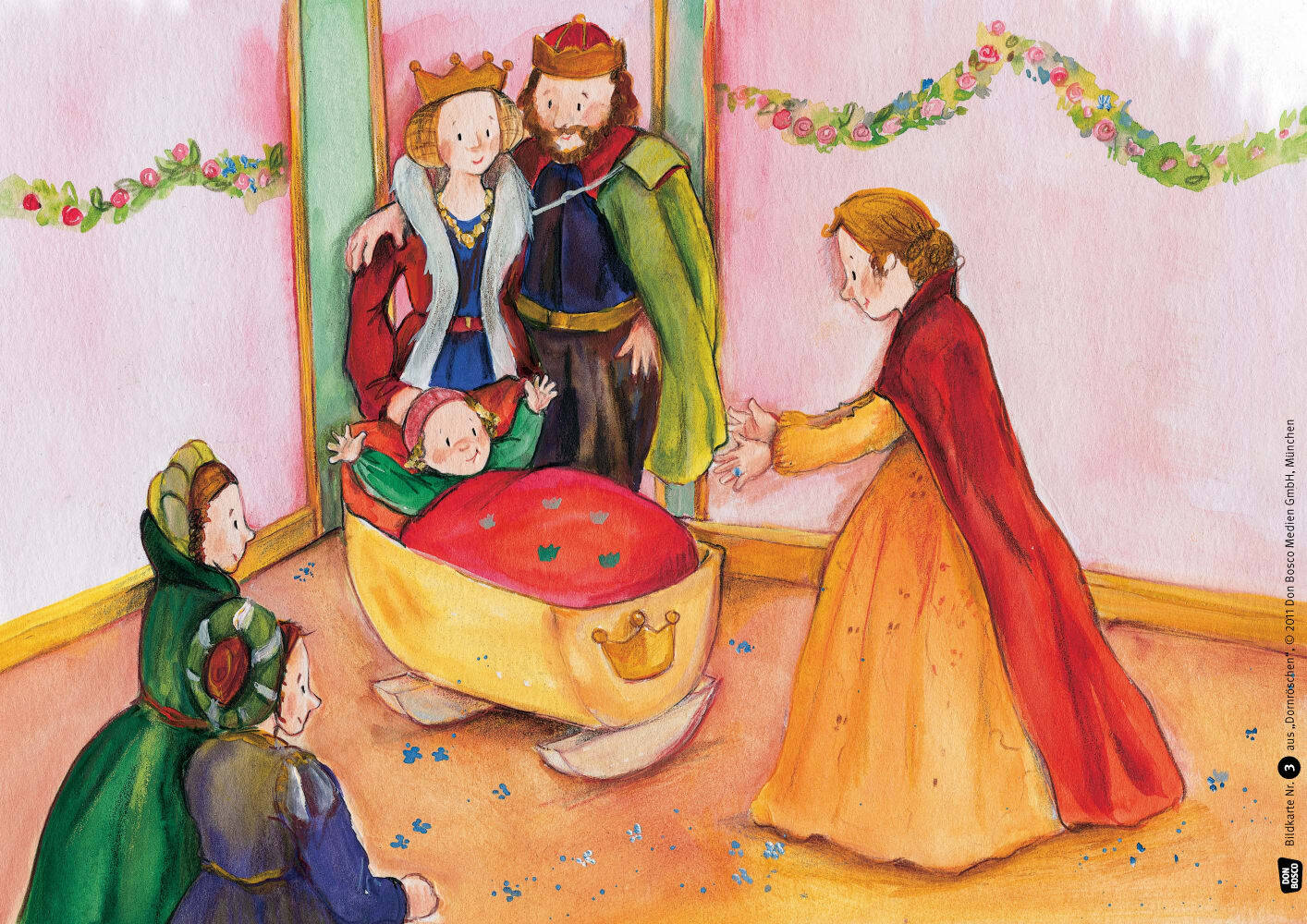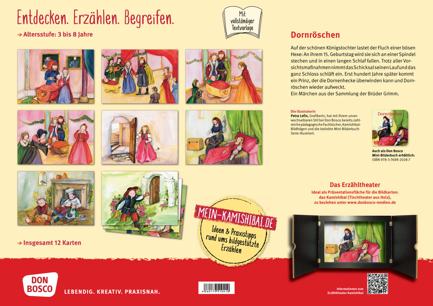 Auf der schönen Königstochter lastet der Fluch einer bösen Hexe: An ihrem 15. Geburtstag schläft das ganze Schloss ein, bis ein Prinz sie 100 Jahre später wachküsst. Don Bosco Verlag für Pädagogik Bildkarten, Kamishibai oder Fachbücher für Erzieherinnen und Pä...