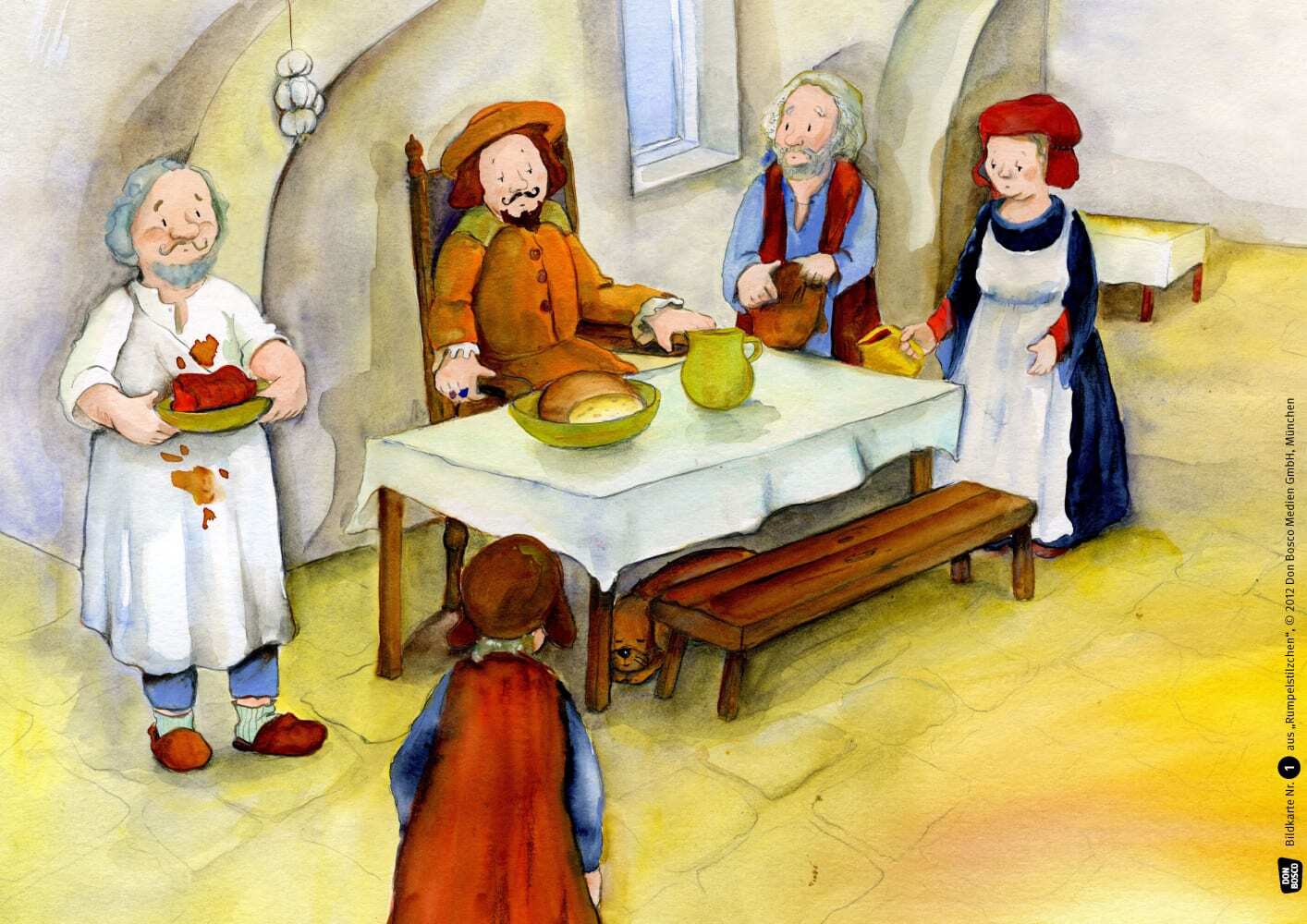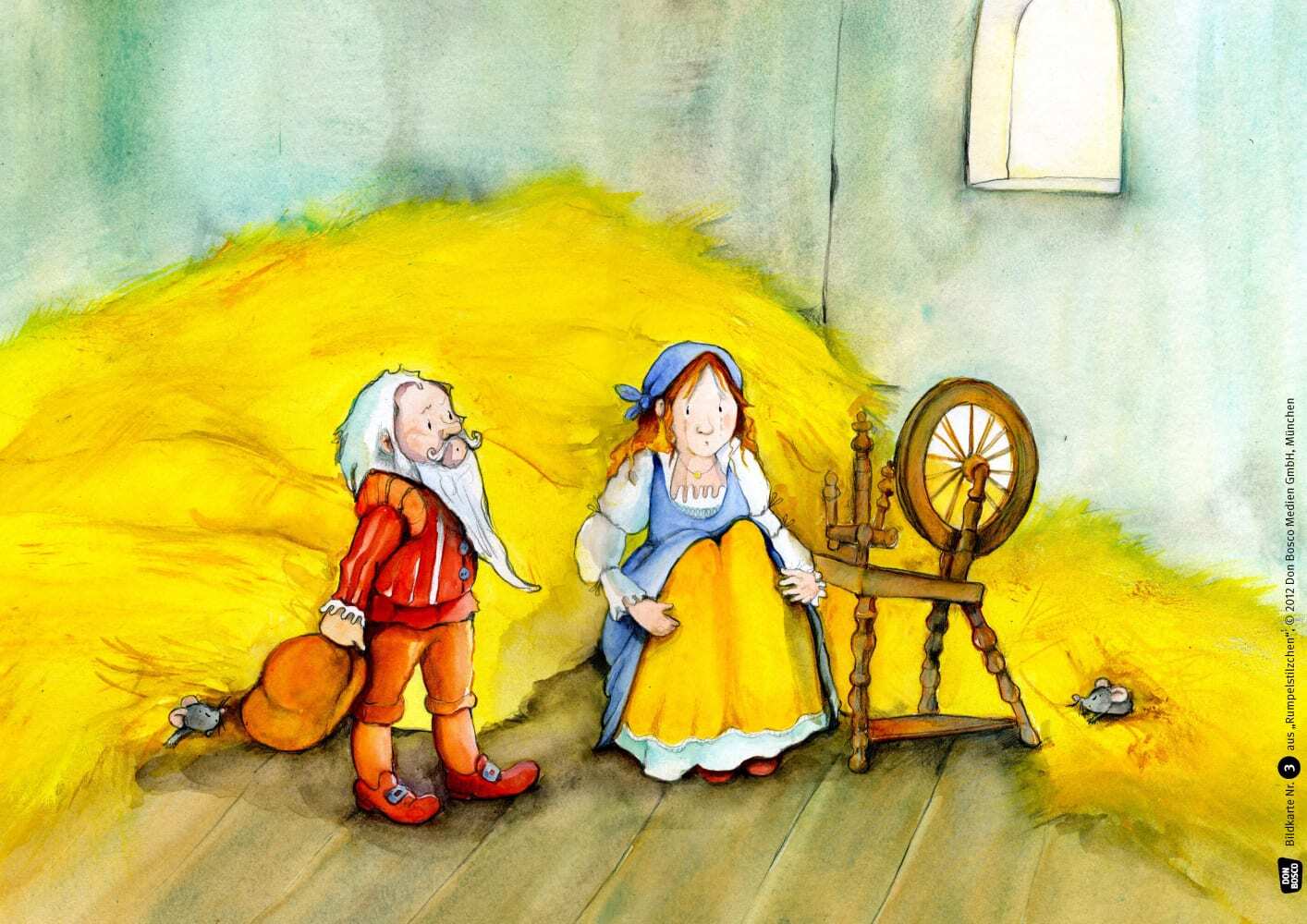Der Müller will, dass seine Tochter den König heiratet. Er behauptet, sie könne Stroh zu Gold spinnen. Rumpelstilzchen bietet der Tochter seine Hilfe an - aber zu einem hohen Preis. Der Märchenklassiker für das Erzähltheater Bildergeschichten animieren Kinder ...