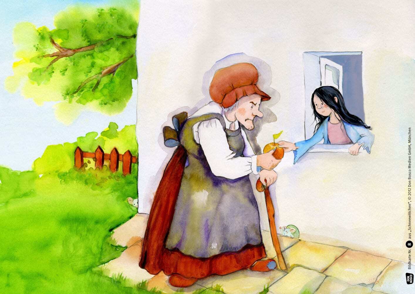 "Spieglein, Spieglein an der Wand, wer ist die Schönste im ganzen Land?" Da die böse Stiefmutter es nicht ertragen kann, dass Schneewittchen tausendmal schöner ist als sie, muss das schöne Kind fliehen. Tief im Wald findet es Zuflucht bei den sieben Zwergen. Doch auch diese können Schneewittchen nicht immer beschützen ... - Ein Märchen aus der Sammlung der Brüder Grimm.