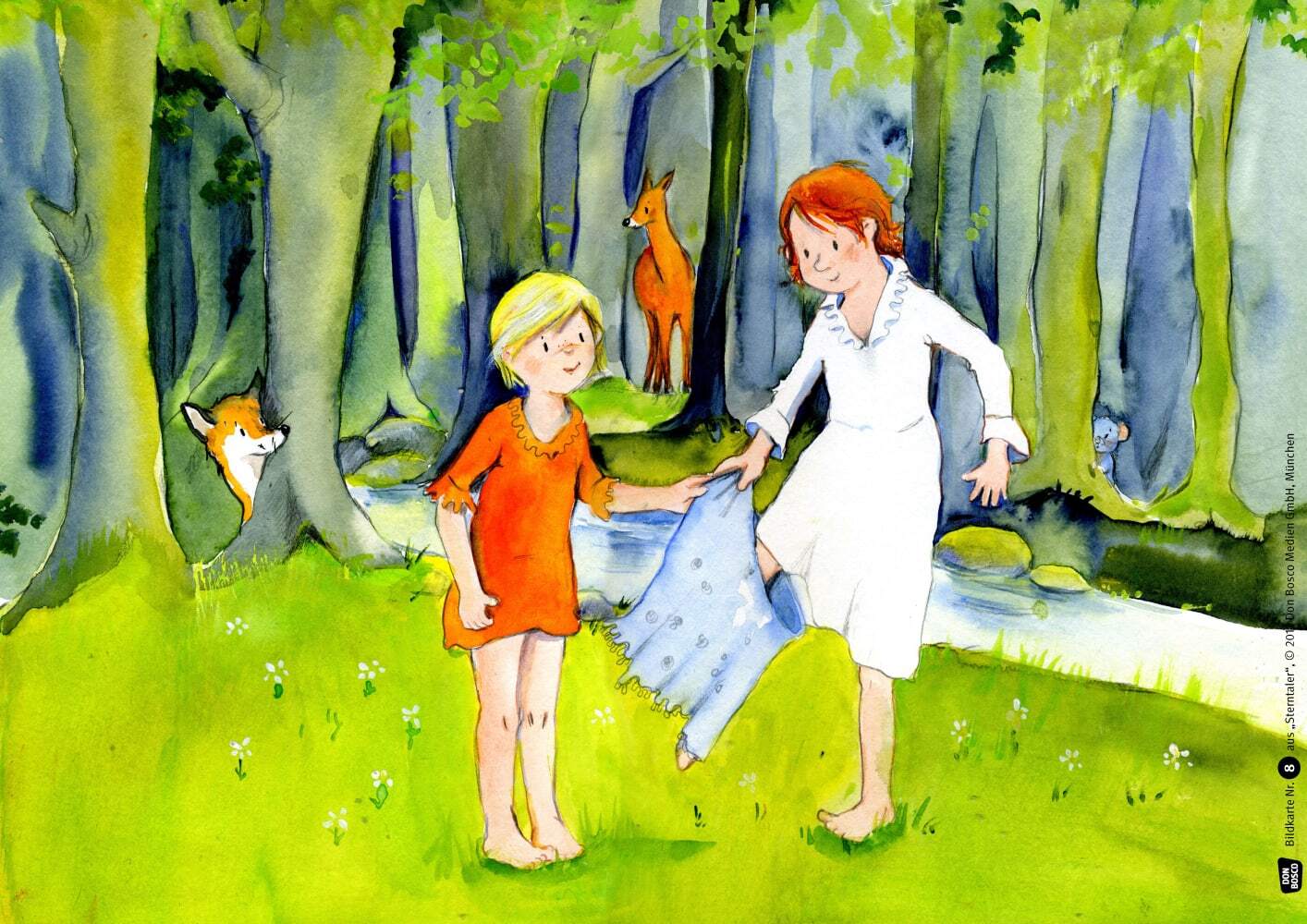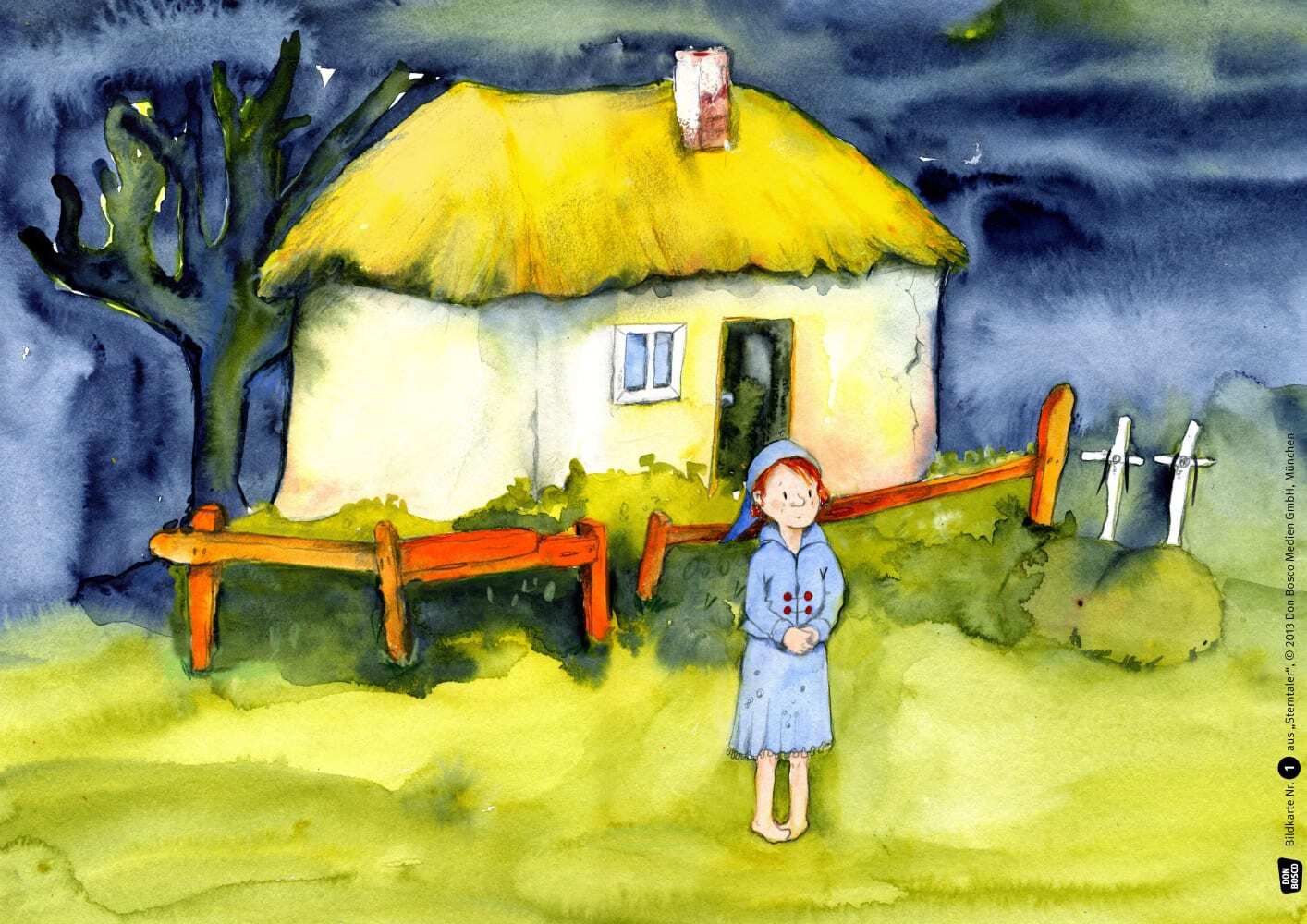 Ein armes Waisenkind verschenkt sein letztes Stück Brot und nacheinander all seine Kleider an hungernde und frierende Menschen, denen es auf seinem Weg begegnet. Zuletzt steht es völlig nackt und allein im Wald. Da fallen die Sterne als Taler vom Himmel ... - Ein Märchen aus der Sammlung der Brüder Grimm.